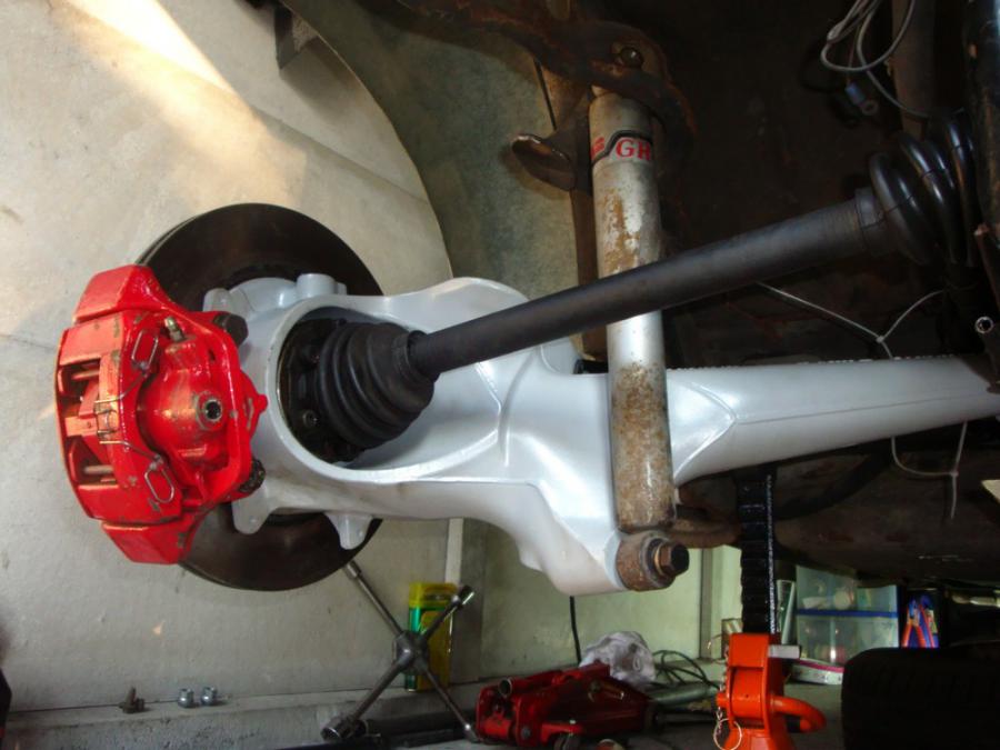 En gros, j'ai monté le compteur de 914. Les barres de torsions de 1200(!) sont remplacées pas des 944: Les supports du renfort de nez de boite sont soudées: Les lames 944 sont montées avec des silent bloc uréthanes modifiés: Voilà l'ensemble. Reste à monter mes goujons (réception samedi) pour les amortos et les vis lames/bras. Avec Benoit, on à fait un petit montage à blanc du moteur avec l'échappement pour valider le pot, les jantes et les ailes. Voilà pour les news. Ca avance. D'ailleurs, il est content Ayrton