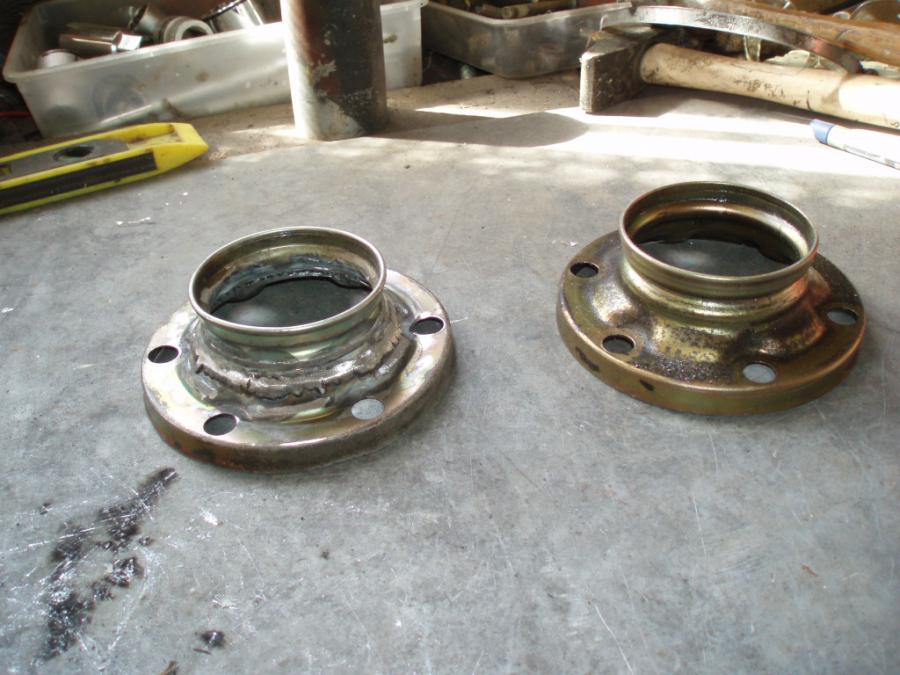 donc on utilise le cache de bout que l'on découpe, puis on prend le flasque des cardans avant de la C4 (idem 944) qu'on découpe également afin de récupérer la partie ou viens se fixer le souflet puis soudure un peu de meulage et zou... quelques euros d'économiser!!