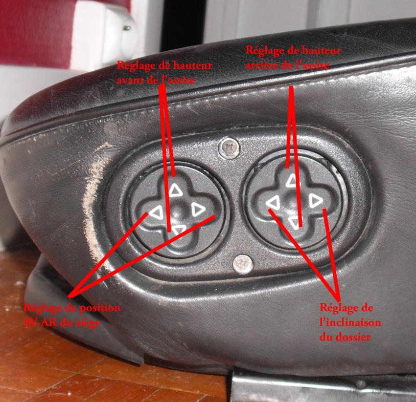 le seul truc que je peu te dire c'est que j'ai deux boutons sur chaque sièges, avec quatre flèches directionnelles par boutons...