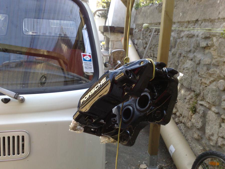 aujourd'hui j'ai peint les étriers avec le kit Foliatec special étriers de frein , peinture bi composants.Je les avait soigneusement poncés avant , le vernis avait bullé.... Me dites pas je les aurai peint en rouge, d'orgo c'est du noir, pis je prefere la discretion