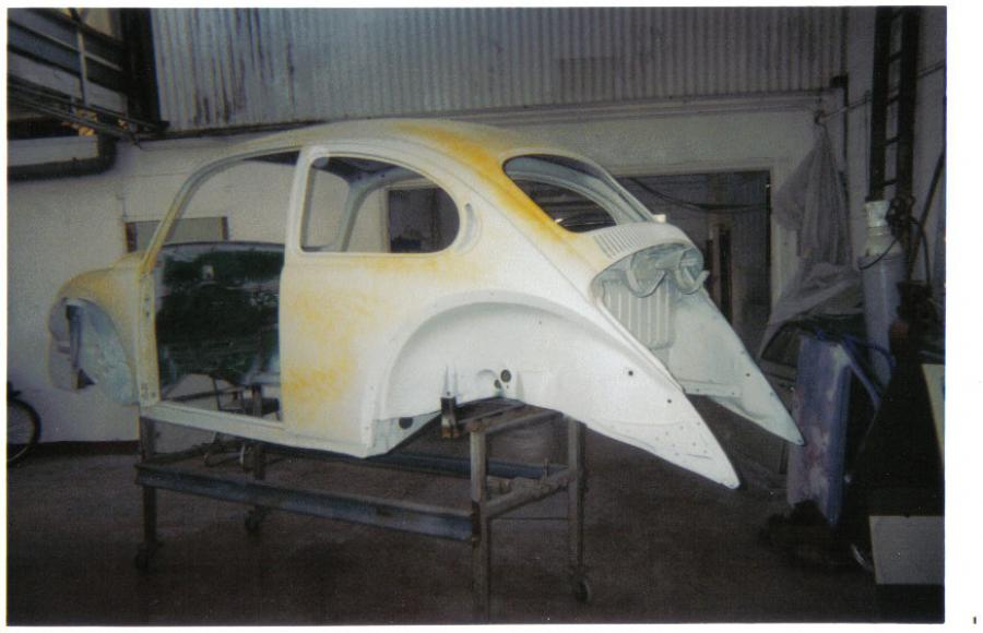 Et là, le décoquage complet, puis carrosserie pure (le pavillon avait eu le droit à des portes papillons, mal ressoudées)(garage).jpg[/attachment] Mise en apprêt: Chassis pret à recevoir bientôt la coque: Vues sur le moteur et la boite de vitesses: Et enfin quelques photos de l'ensemble: Actuellement elle est dans la phase 1 de sa transformation: