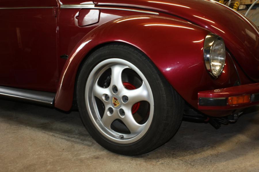 Montage B, fusée 944 Turbo, combinés filletés kercher, pas de cale, ailes kercher +20mm. La distance entre le pneu et le ressort est suppérieur à 20mm.
