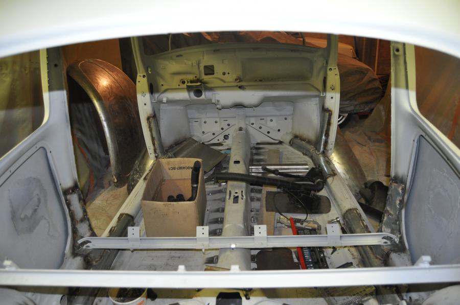 passage en après phosphatant et garnissant sur la caisse et le chassi j'avais auparavant repèré (à l'aide de scotch) les endroits pour les soudures du chenillages