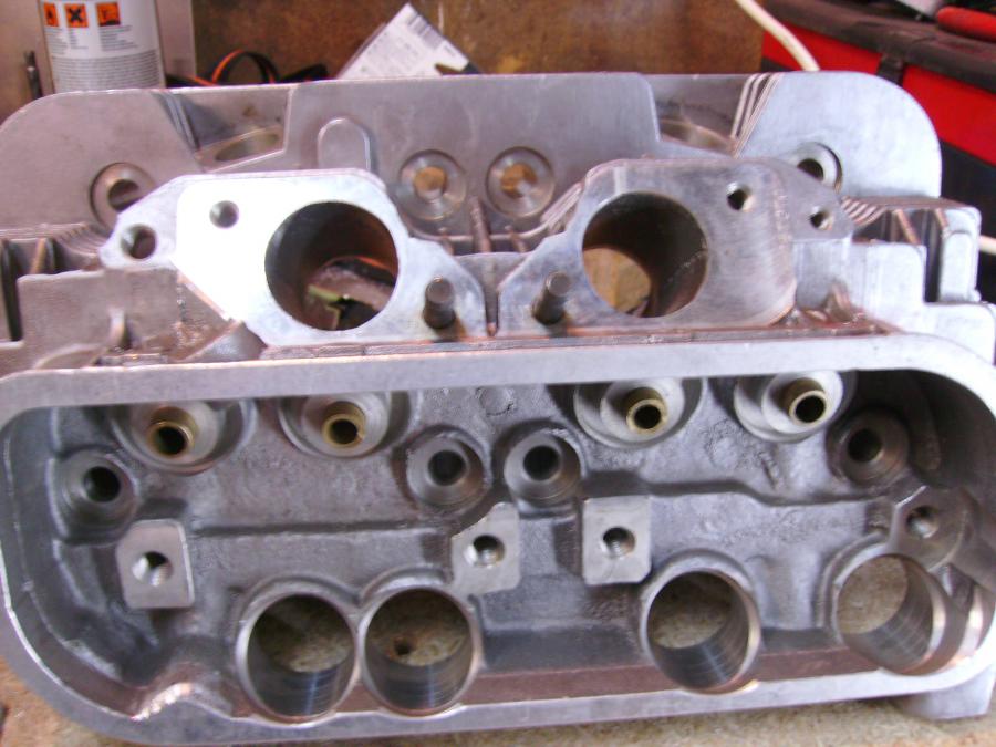 Marc a acheté des culasses ches BAS. Ils partent de culasses de fonderie AMC neuve et montent des sièges pour soupapes en 44x38 et des guides neufs. Ils alignent comme des gros cochons le siège de soupape avec le conduit, on dirait que c'est fait au burin et marteau!