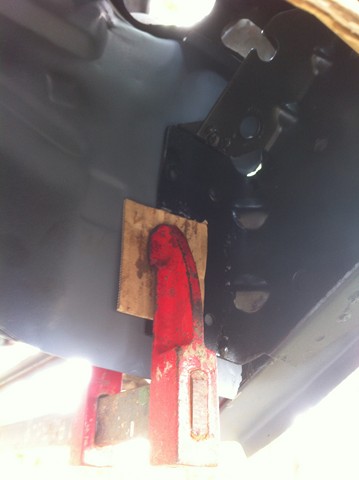 Une fois que le cadre est bien soudé de partout, je le revisse sur le chassis et avec l'aide de ma chèvre je remet la coque.