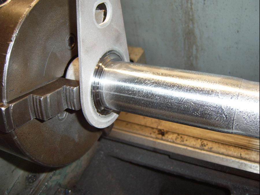 Pas besoin à l'intérieur, j'ai garder un silent-bloc pour remplir le trou, mais la totalité du guidage se fait sur les deux roulements EXT. Par contre, mon support de roulement est un support 944 avec les oreilles recoupé (lame 944). Le tout passé au tour (support et lame) pour passer sur des côtes standard de roulement.