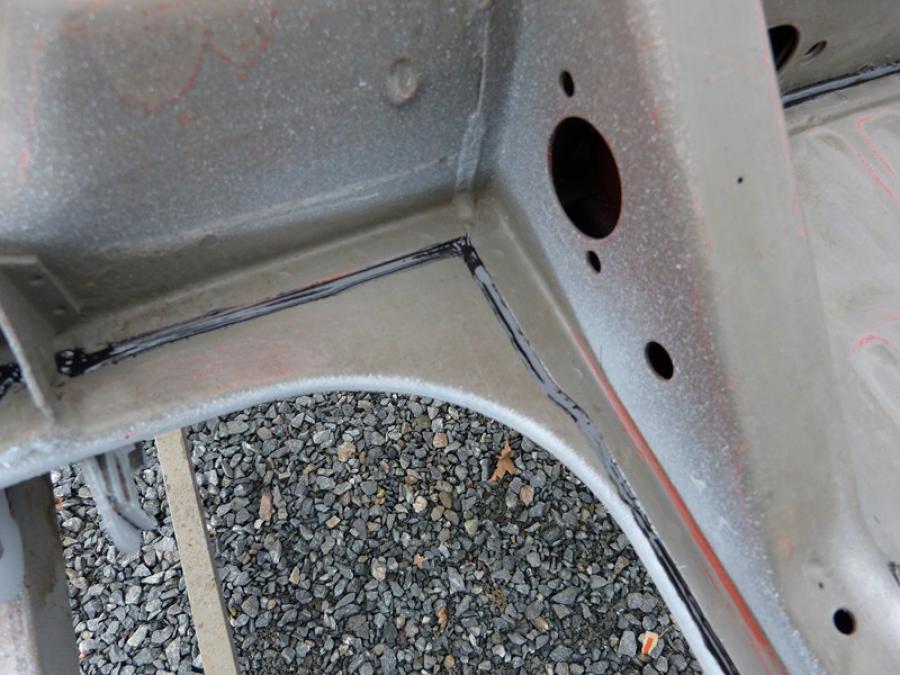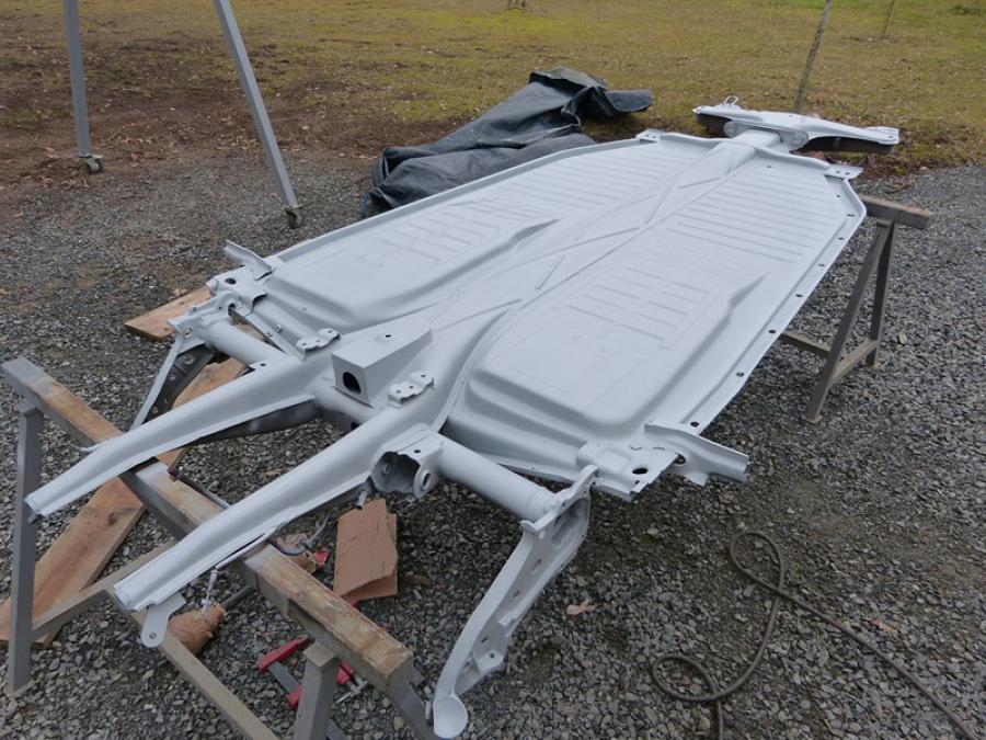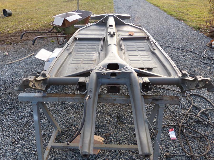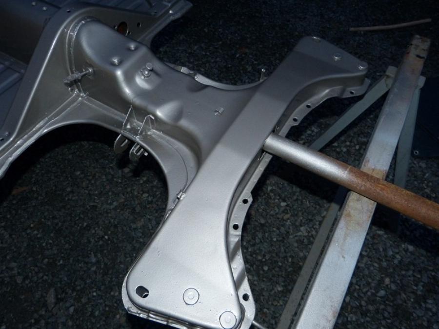 Présentation du bouzin maintenant que tout est soudé et traité, je démonte tout et je fait les joint d’étanchéité et passe une couche d'apprêt garnissant sur le dessous du chassis