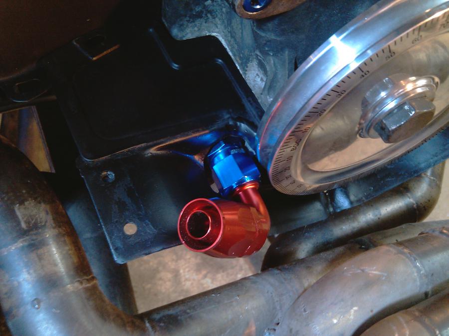 En fait, ça a été plus simple que prévu, juste quelques trous pour passer les écrous de pompe à huile et le raccord full-flow.