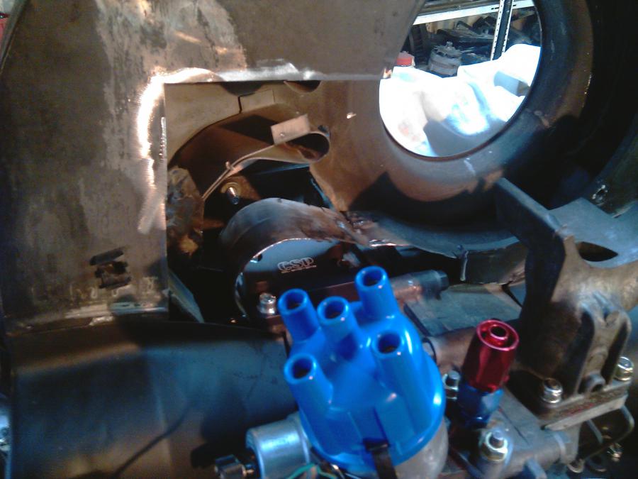 J'ai aussi finalement supprimé le radiateur d'huile d'origine vu qu'il finira dans la 1303.