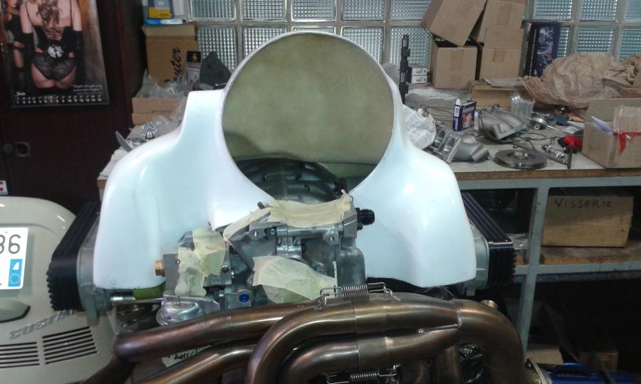 Ouais la coiffe est prévue à la base pour une turbine de 250mm, elle est modifiée pour une turbine classique en 260mm avec usinage BAS. Celle-ci en plus est élargie de 12mm par coté. Le dos de la coiffe est justement aplati pour forcer l'air à aller sur les cylindres 2 et 4, il y a aussi des bossages pour guider l'air ainsi qu'un déflecteur qui se monte sur le carter. Il y a même des plats pour fixer des départs pour le chauffage!
