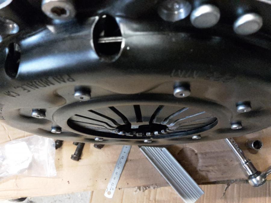 Lorsqu'on monte un embrayage, la membrane (=diaphragme) se met en tension. Oui, mais de combien? Concrètement, lorsque je sers le mien dans l'exemple ci-dessous, il rentre de 25mm environ.