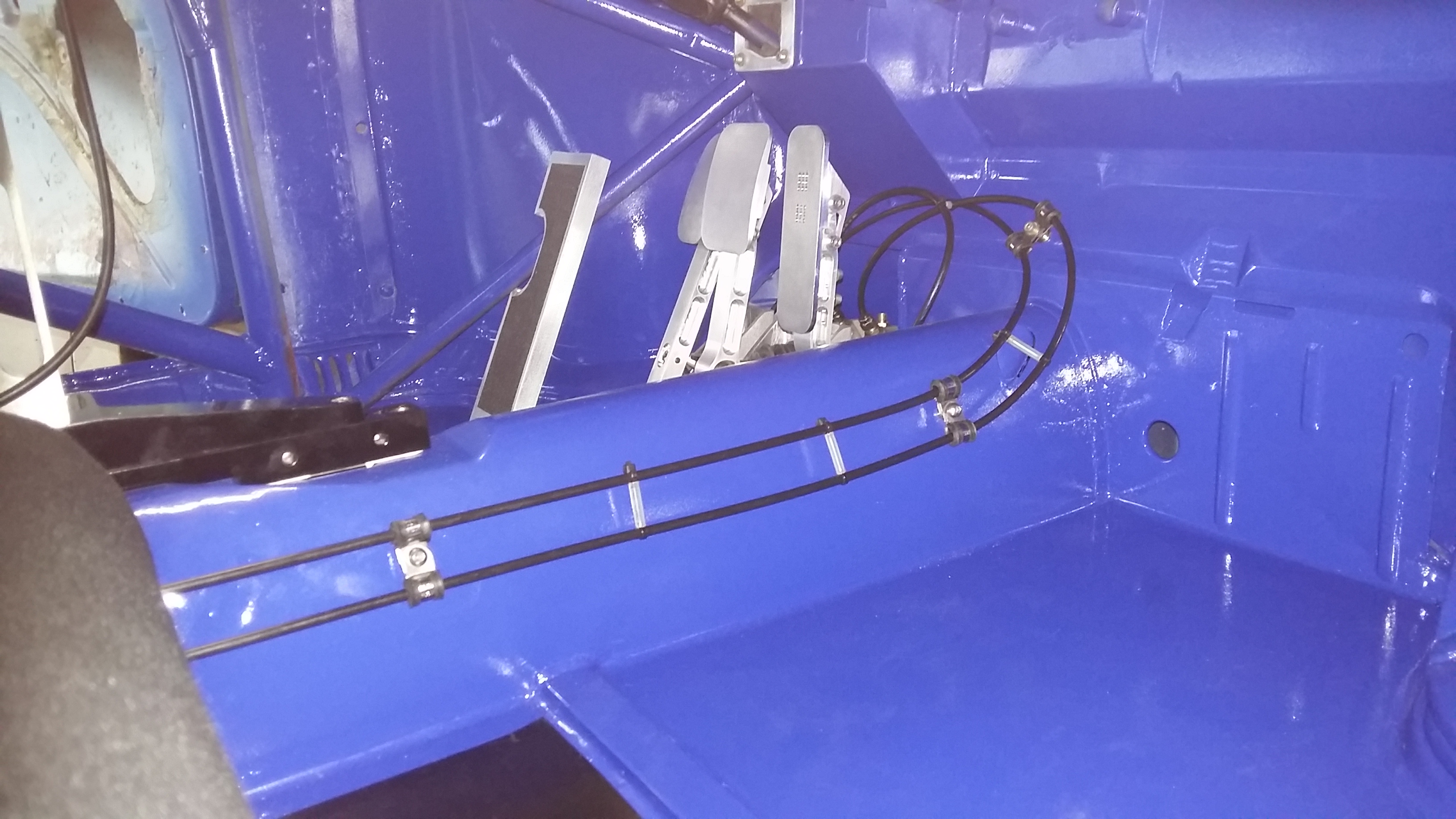 boulot de la semaine , intérieur fini a 80 % , circuit hydraulique ( freins et embrayage )terminé , commandes en place , position pilote et copilote ok , reste circuit et commande électrique , panneautage .......