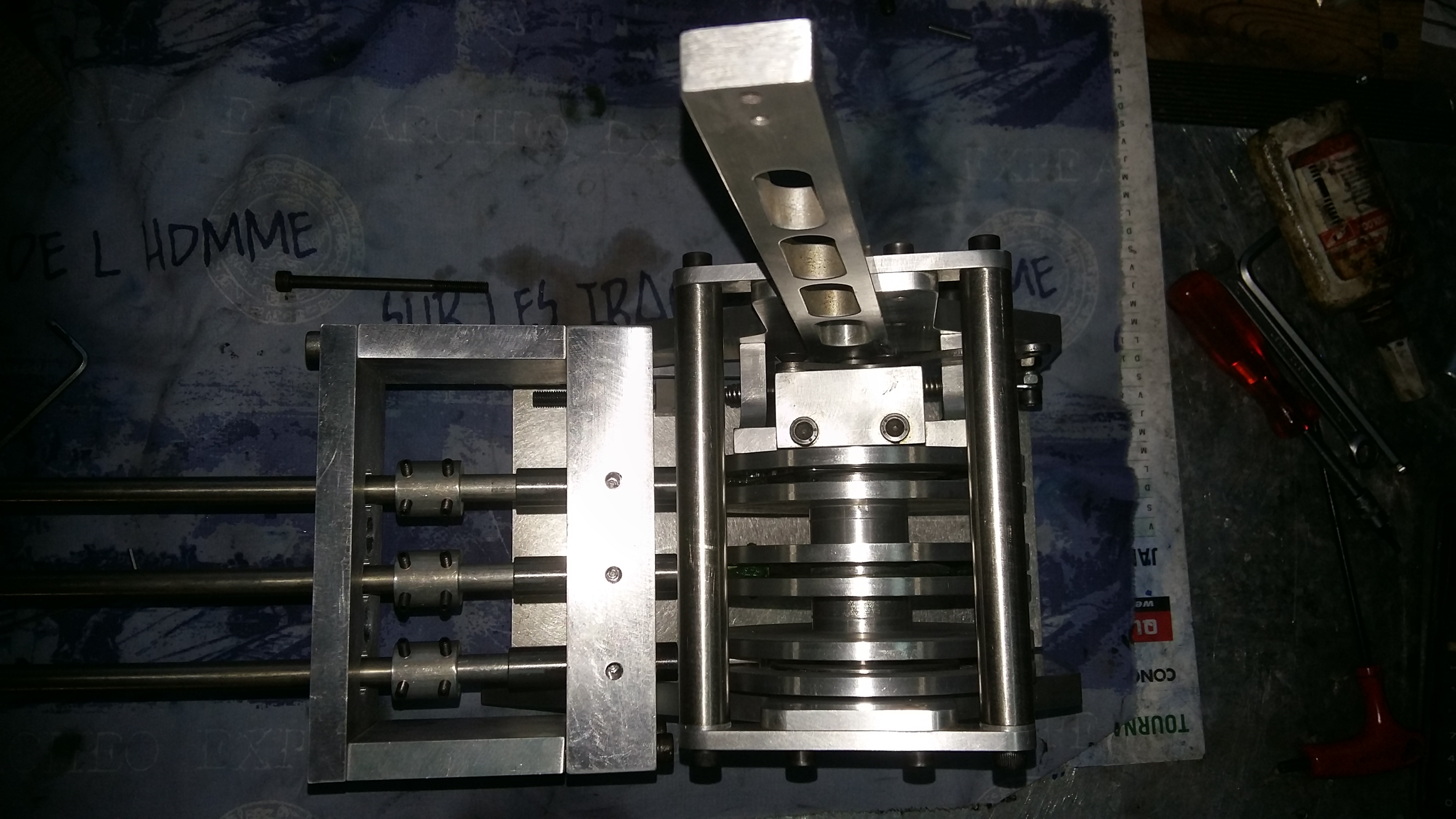 Le fonctionnement sera le même que j avais prévu pour la boite cox , il faut remonter au trois première pages du post , sauf que là le mécanisme vas se trouver directement fixer a la boite et il n y aura qu une biellette qui iras au levier ...