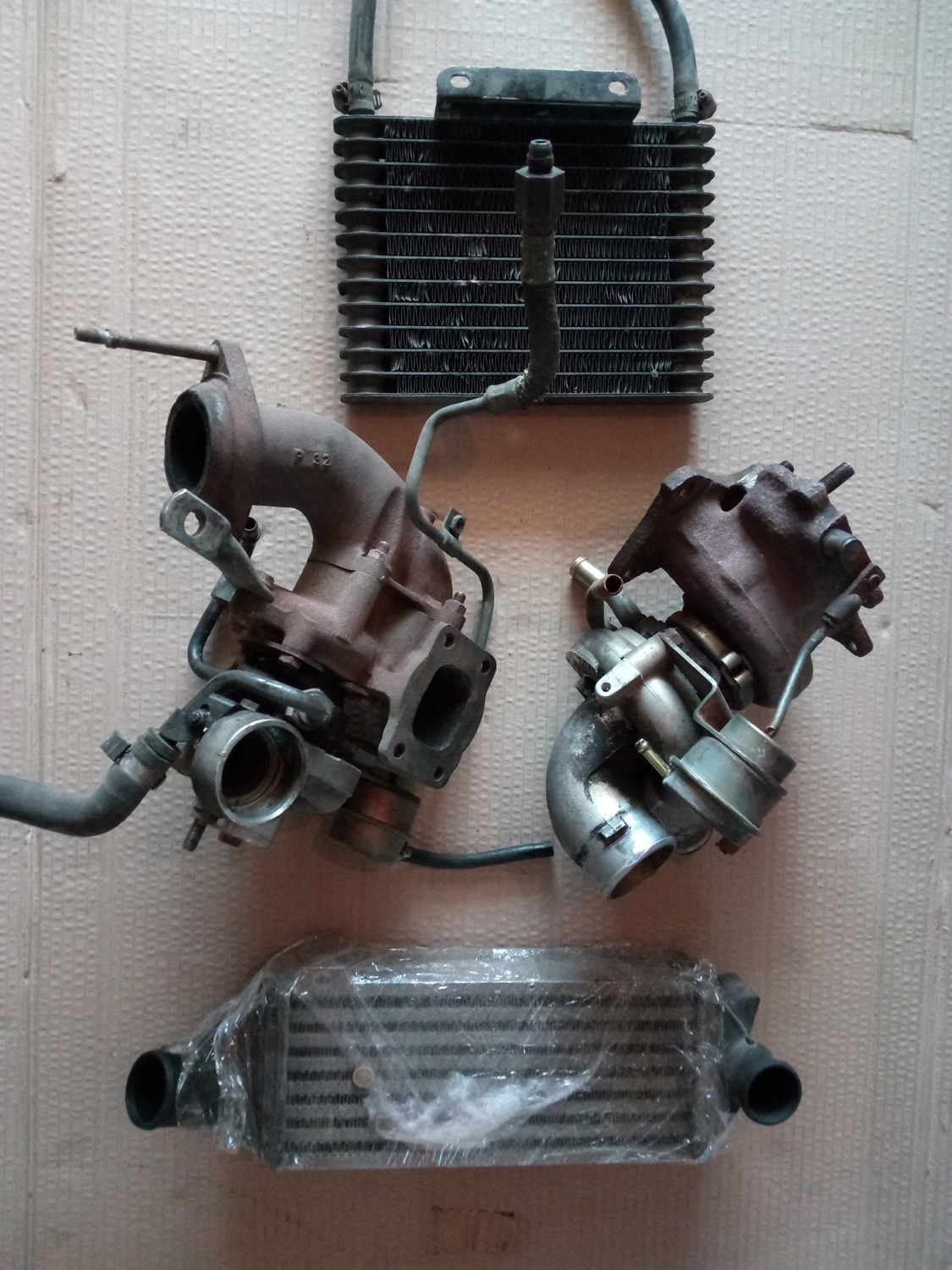 - 1 petit turbo GARRETT T25 de R19 -OU- 1 gros TD04 de Subaru WRX avec intercooler (échnageur air/air) de supercinq turbo et radiateur d'huile.