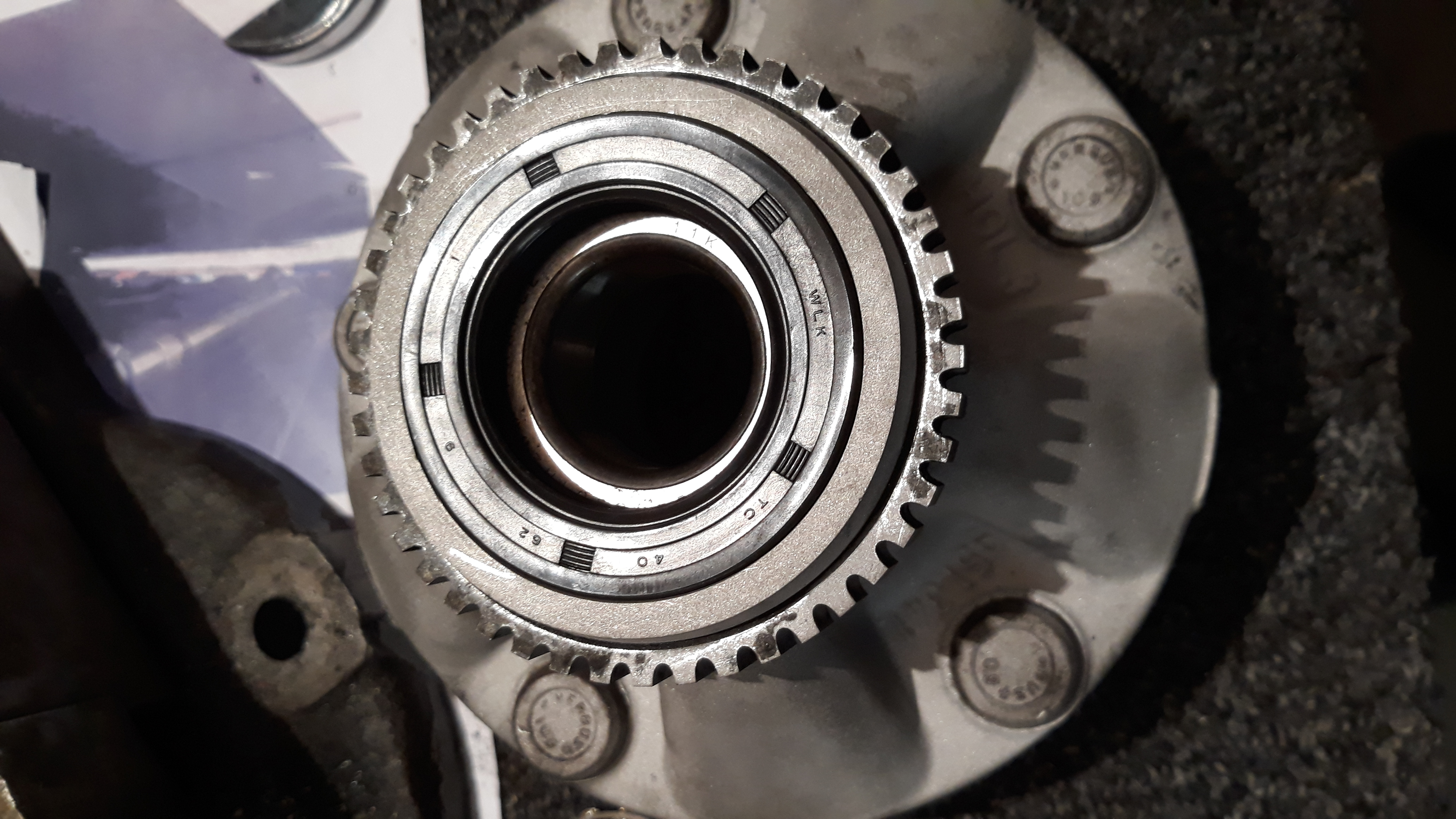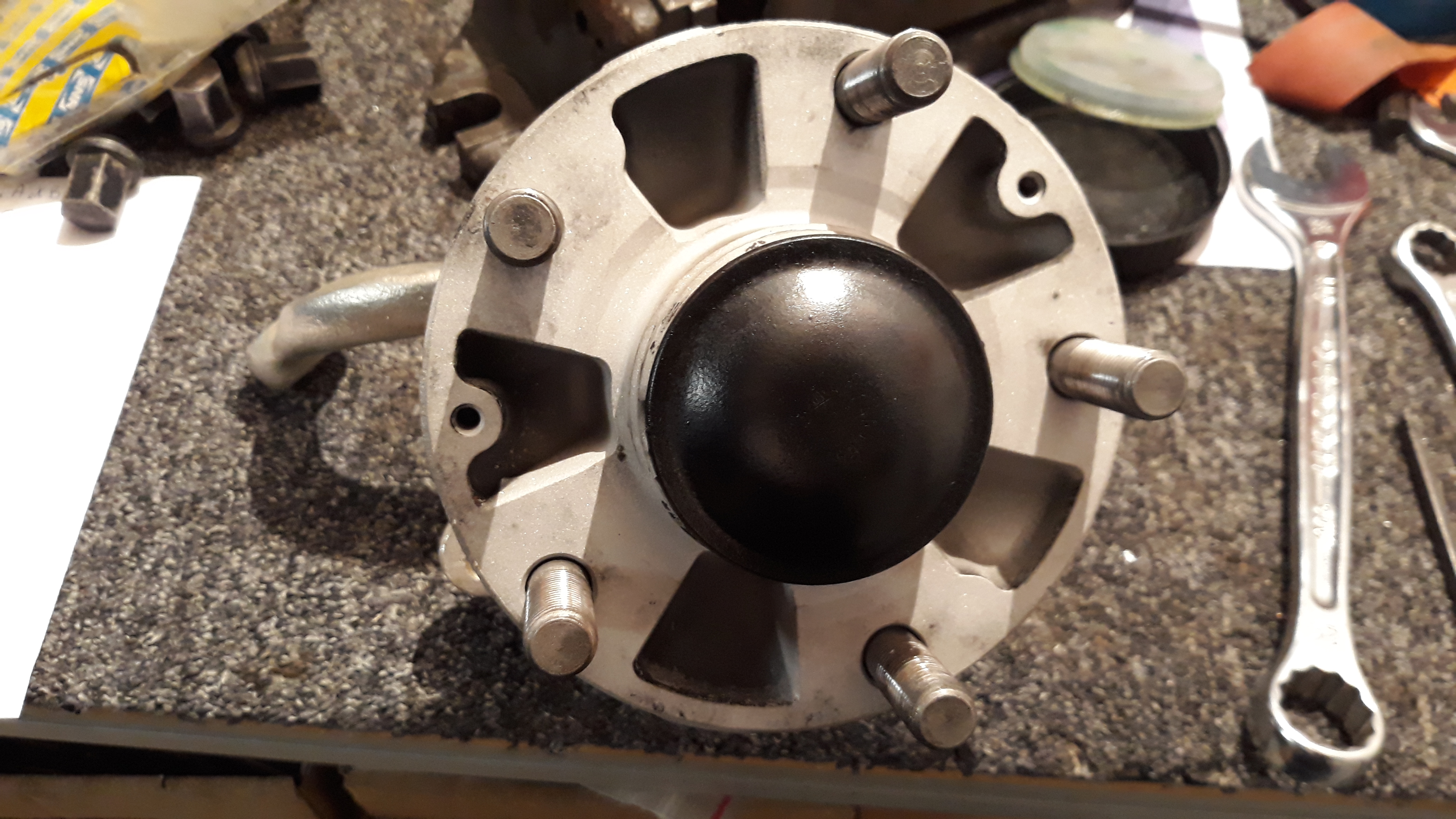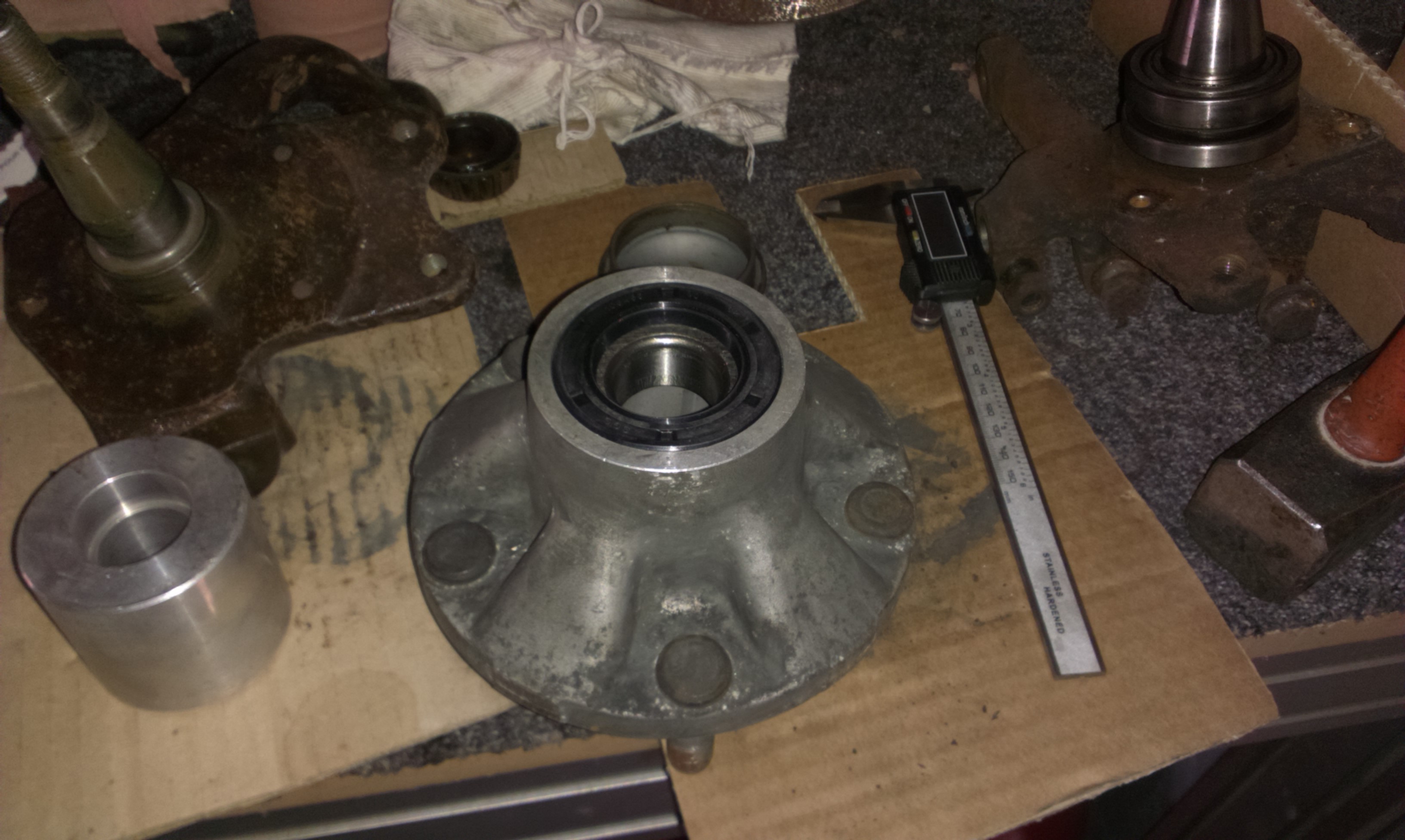 Rappel : aucun usinage, juste retirer la cage du moyeu Porsche, emmancher la bague sur la fusée et réinsérer la cage du nouveau roulement.