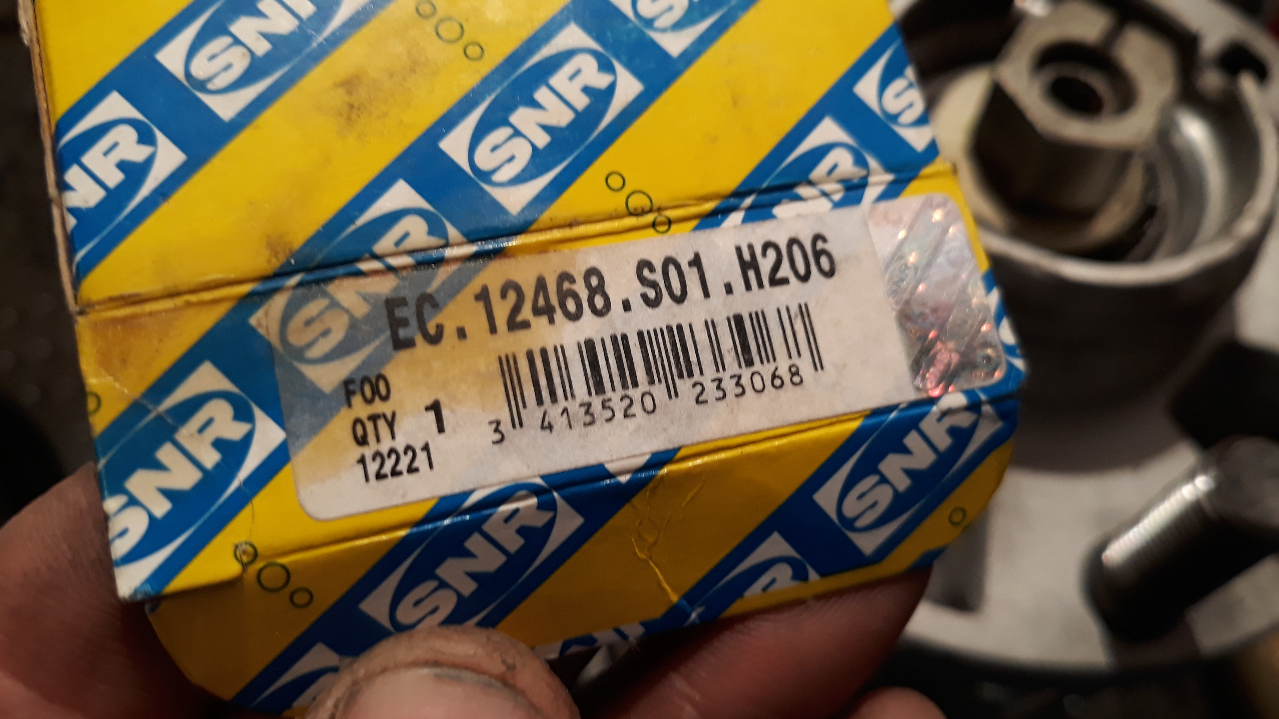 Le mien venait direct de chez SNR, mais c'est un roulement de boite de vitesse opel movano 1999 / vivaro 2001 (ref OPEL 9161352) ou boite Renault PK : EC 12468 S01 H206 (SNR) , ou Safrane 99 ou Master : arbre de boite : 29x60x19.55 : 77 03 090 563