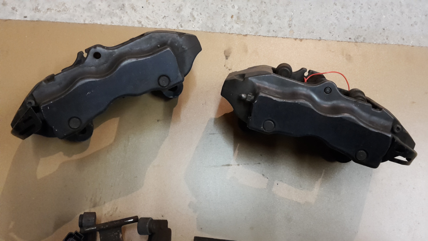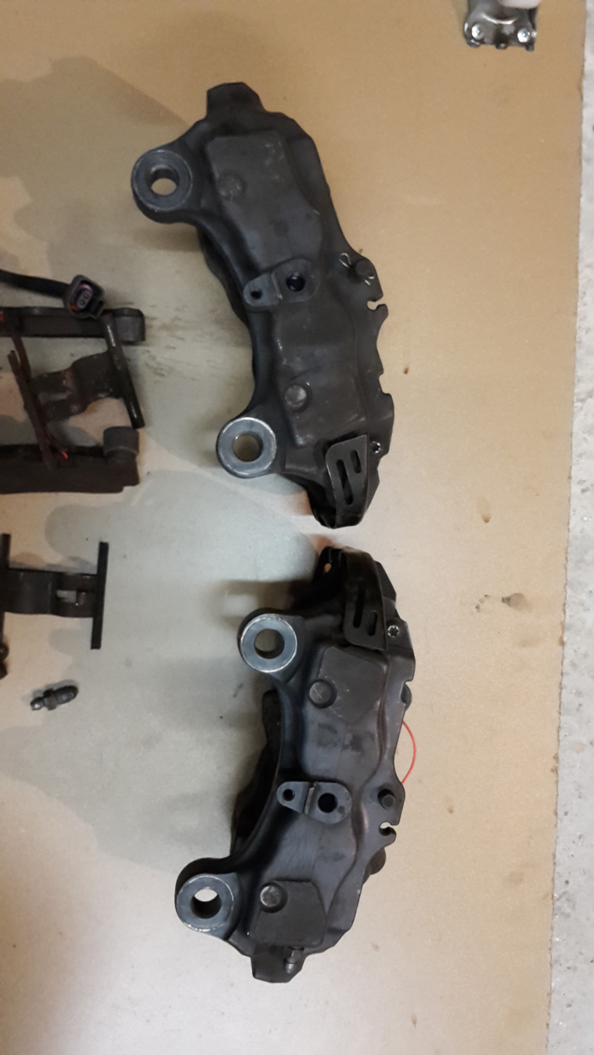 - 2 étriers de Cayenne, Brembo, 4 pistons, plaquettes usées à 40%. Fixation axiale. 150€