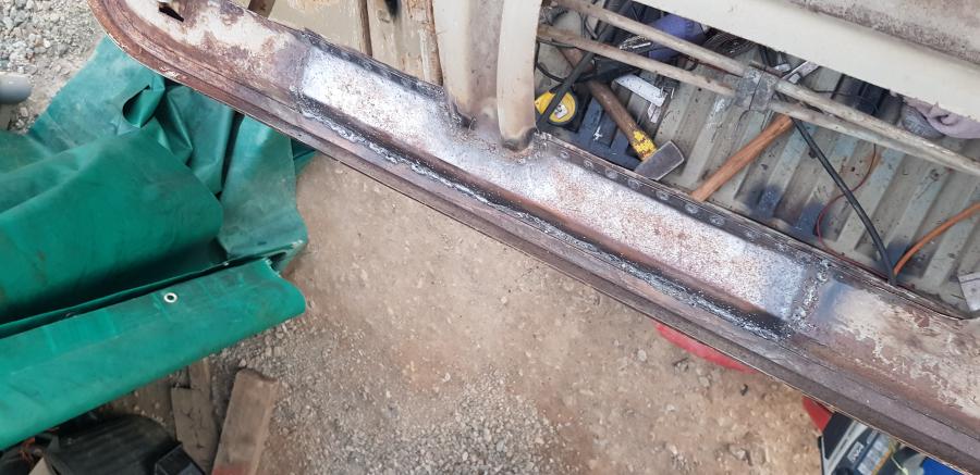 Soudure realisée dans les tous debuts qui etait pas du tout terrible c'est mieux depuis Un peu de peinture a volé a l'interieur de la cloche a nettoyer mais bon guide de butée usiné et butée montée J'attend le reste de la commande et si je peux dans la semaine finir les soudures sur mon bas de panneau car pas pu entre les averses du week end reste encore pas mal de tolerie mais petit a petit sa diminue ..