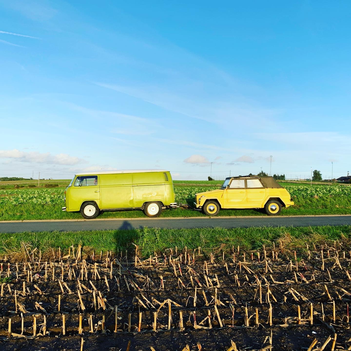 Enfin voila , mes véhicules ne sont pas du tout en état concours , mais ils sont restaurés au niveau chassis et mécanique et fiables pour les utiliser au quotidien . Depuis trois ans j'ai parcouru un peu plus de 31000 km avec Fiona , et Shrek à roulé 12 000km depuis un an . Je n'ai pas de moderne car je n'aime pas ca du tout , j'utilise une vieille mob de 1963 pour bosser et les aircooled me servent pour tous les autres trajets , à l'ancienne quoi