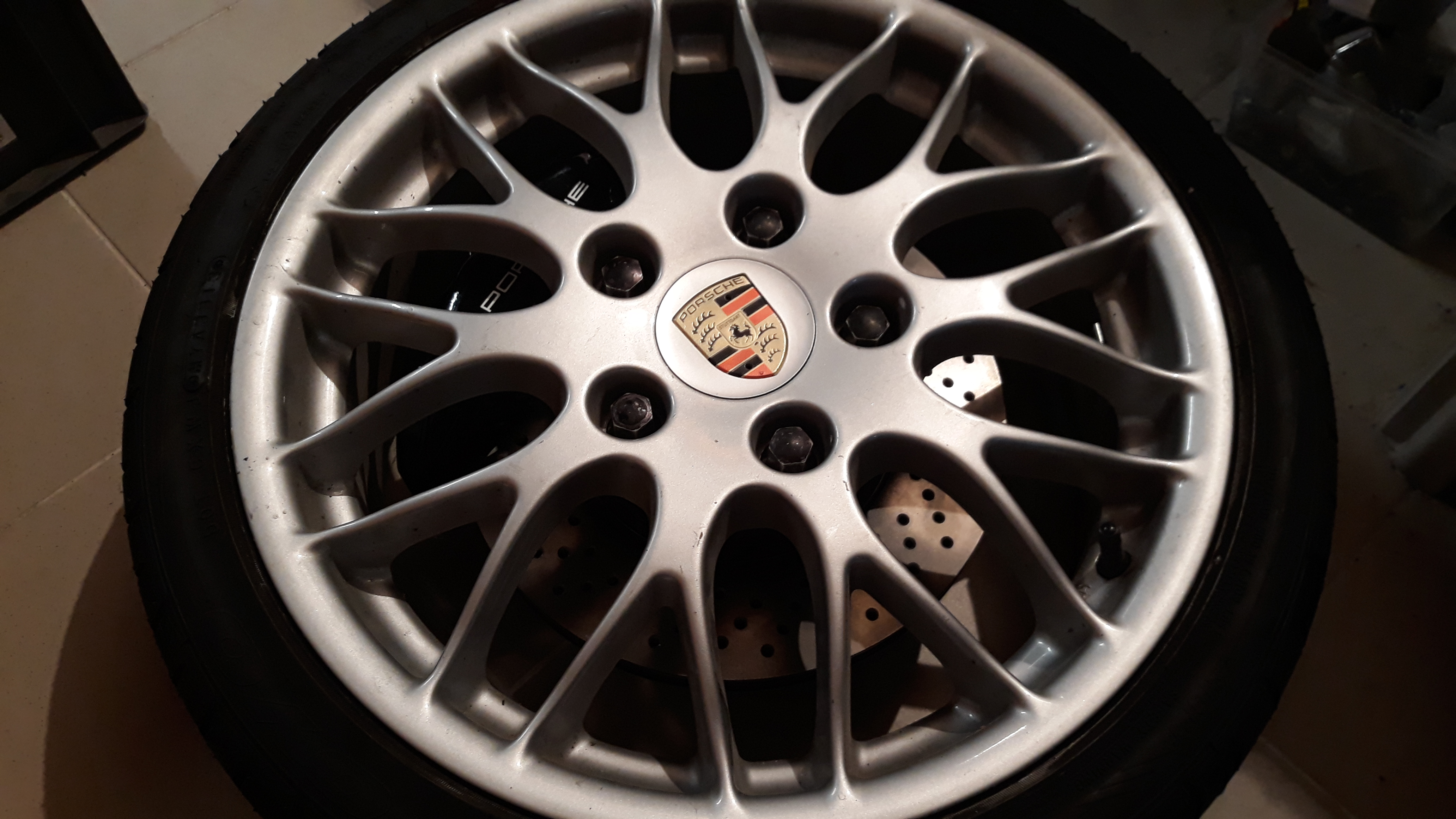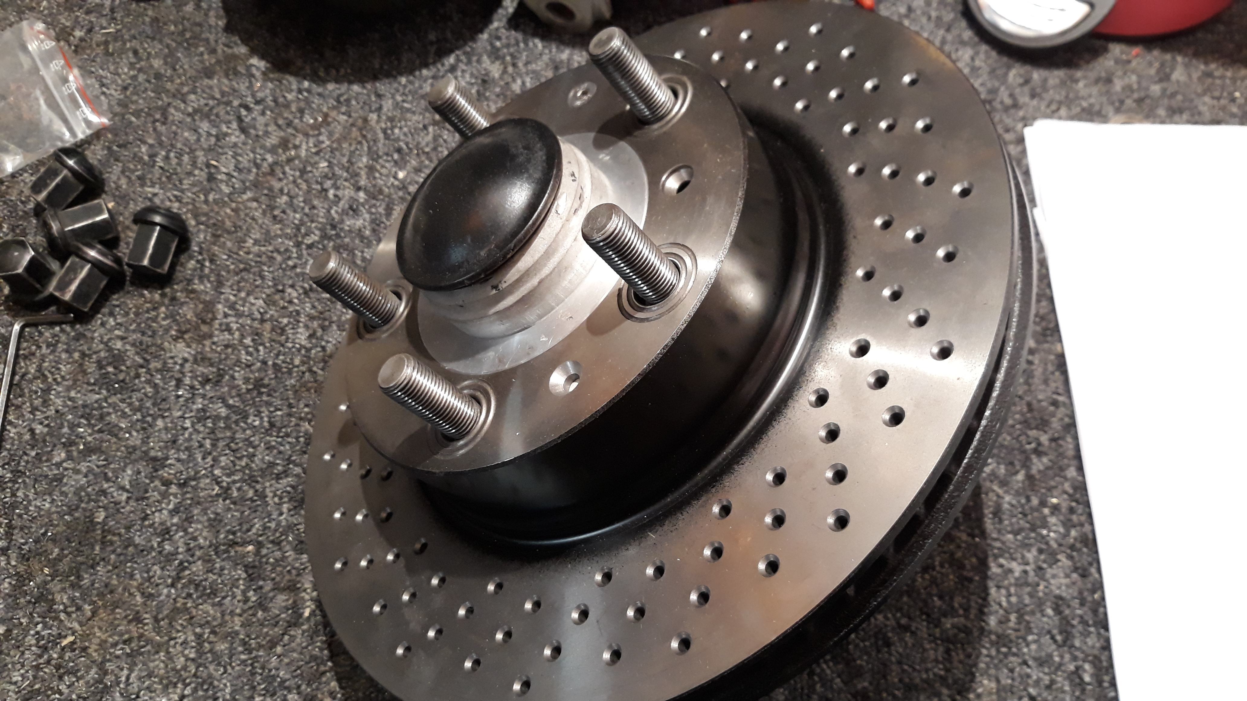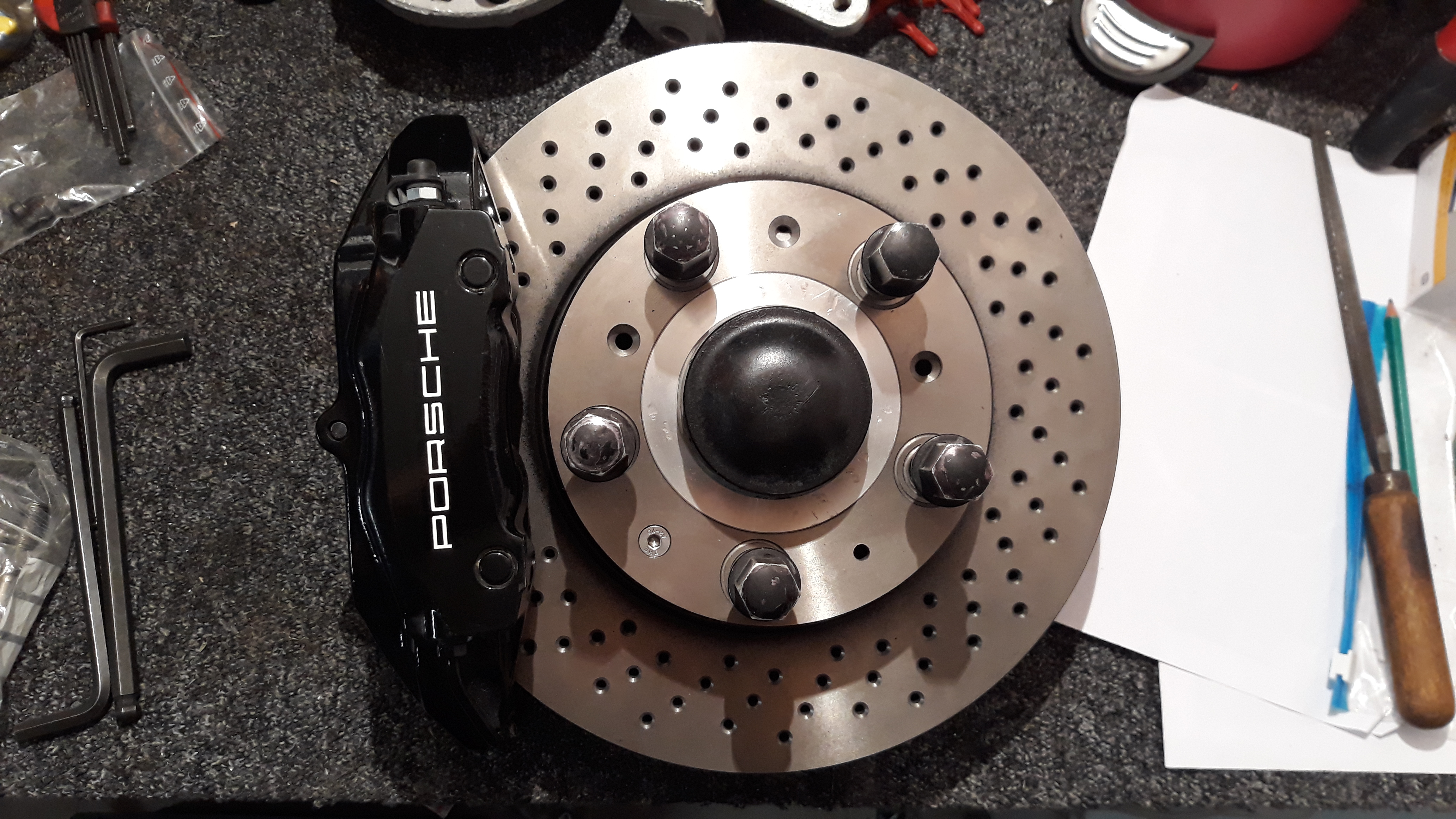Du coup, j'ai des moyeux de 944 Phase2 sur fusées cox, le tout coiffé de disques Boxster S et étriers Boxster S !