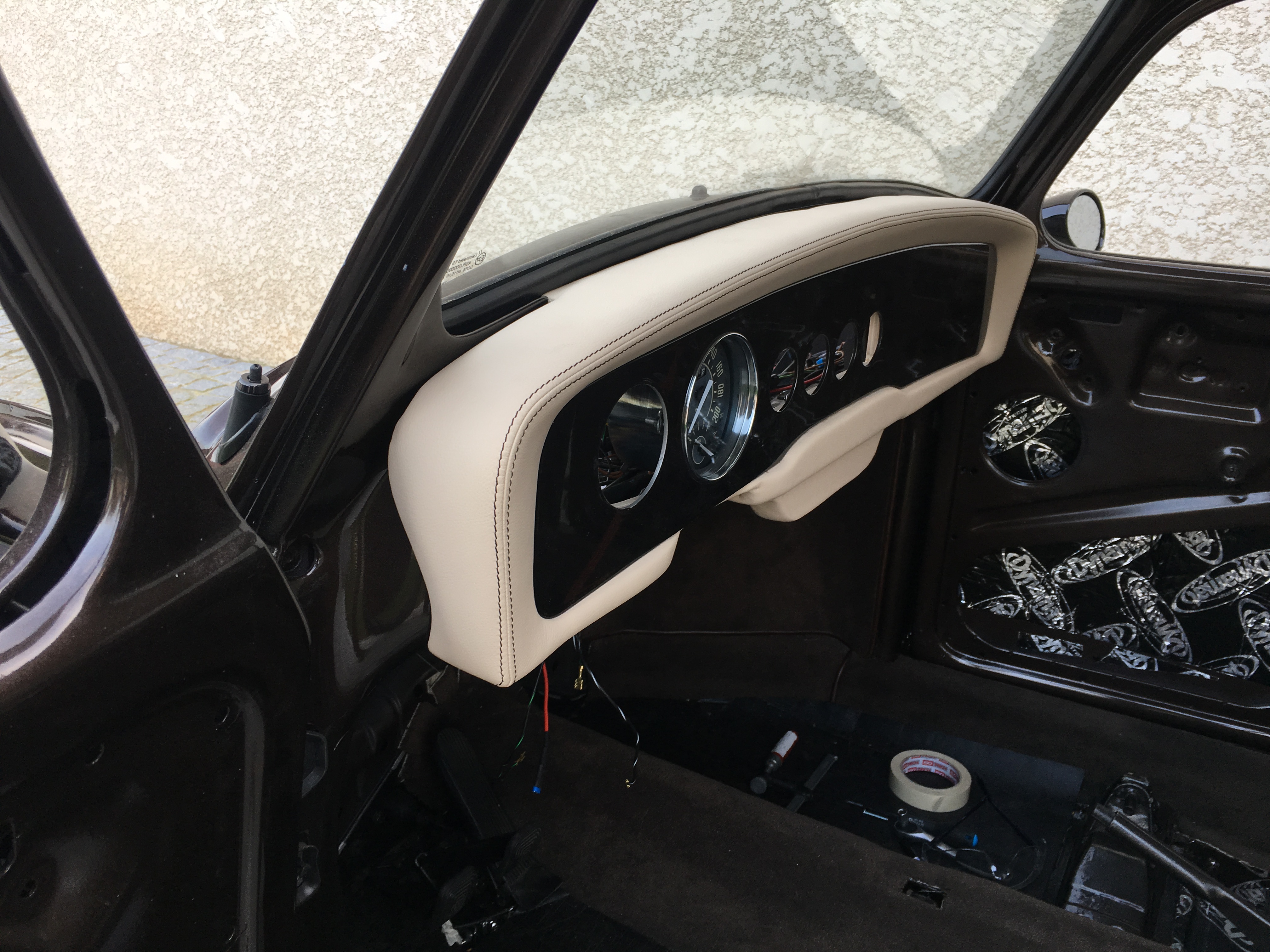 L'intérieur progresse, le tableau de bord est quasi terminé. Reste maintenant l'installation électrique et les branchements. Encore de longues journées à dénuder, à connecter !...