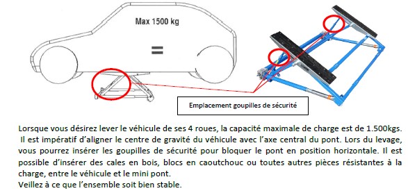 logique, aligner le centre de gravité avec l'axe central du pont, càd l'aligner avec les supports de cric, ça fait vachement vers l'arrière de la cox, les roues arrières sont dans le passage