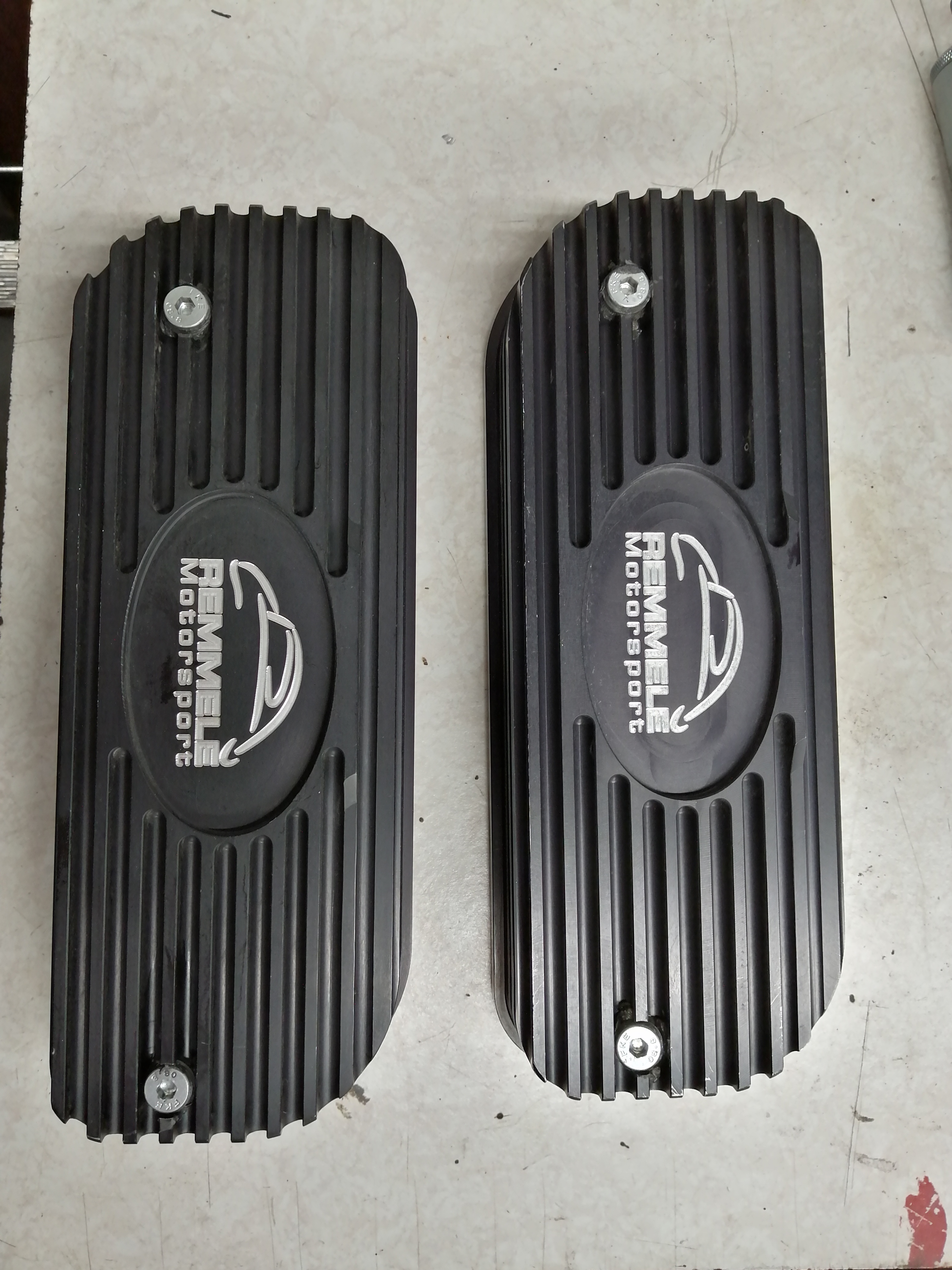 -Paire de cache culbuteurs Remmele usinés dans la masse anodisés noir. Modèles plus fabriqués donc introuvables. L'anodisation est un peu éraflé à quelques endroits mais rein de méchant, ils ont été modifiés à l'intérieur pour passer les gros culbuteurs Pauter mais on ne voir rien de l'extérieur. Etanchéité faite par joint torique. Prix 270€