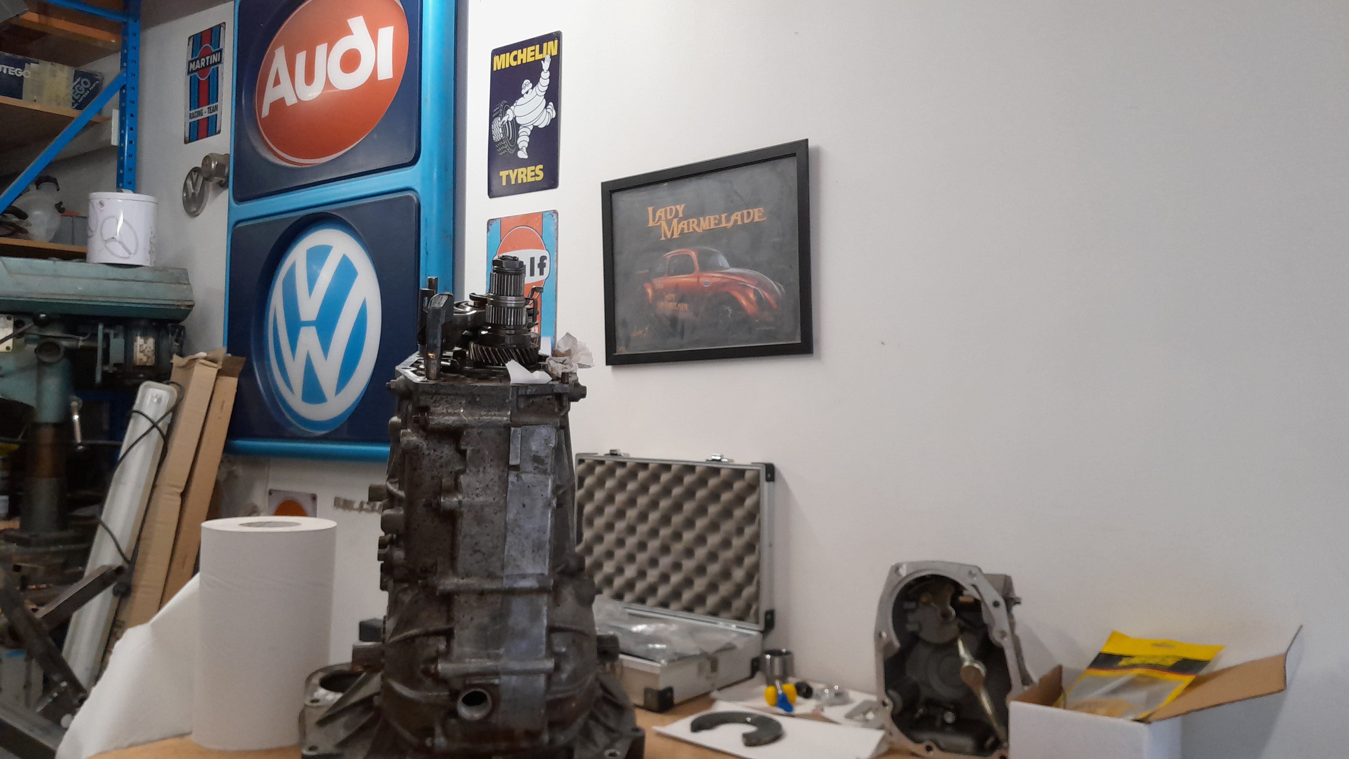 A noter que la boite n'est pas fixée derrière comme une cox ou une porsche, c'est le moteur qui est fixé sur silentblocs