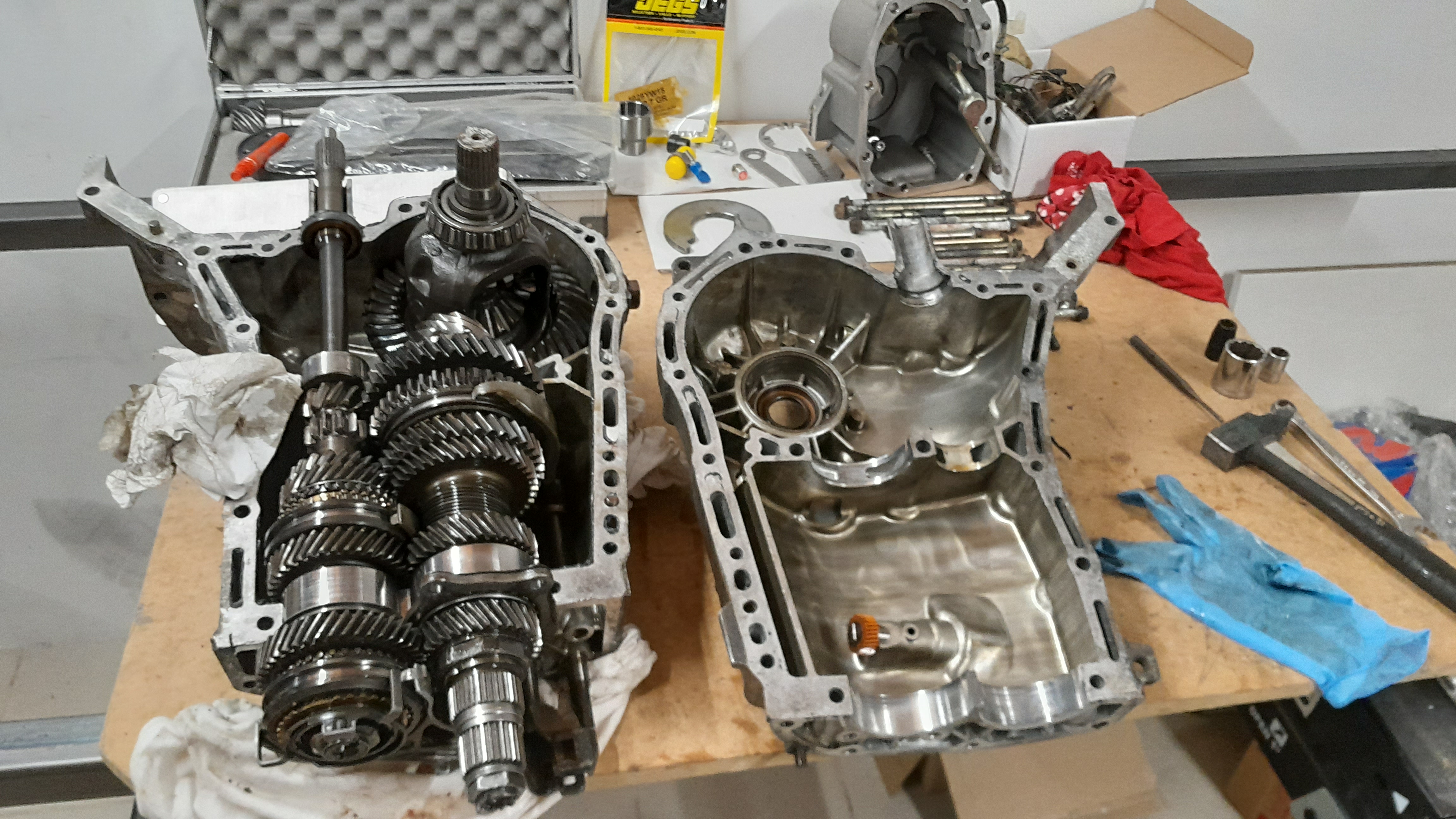 J'essaye de préparer au max... Train avant en cours de beauté Et surtout, j'ai attaqué ce soir un gros morceau ! Et là je me dit... si j'achetais l'huile pour la boîte? Mais... laquelle??