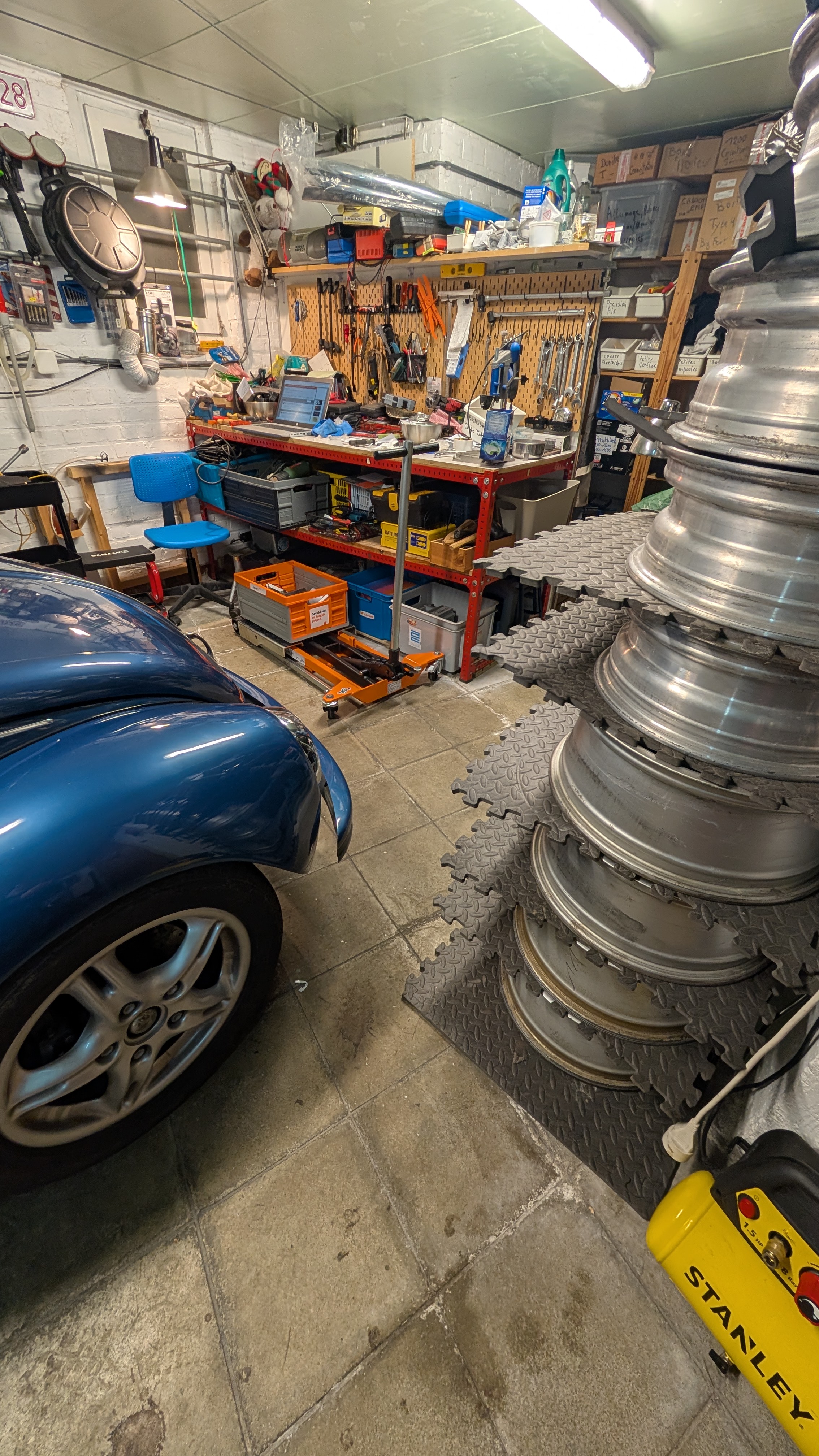 Besoin d'espace pour cette phase 2, je vais travailler à la fois sur les suspensions avant, les suspensions arrières, sortir le moteur ...