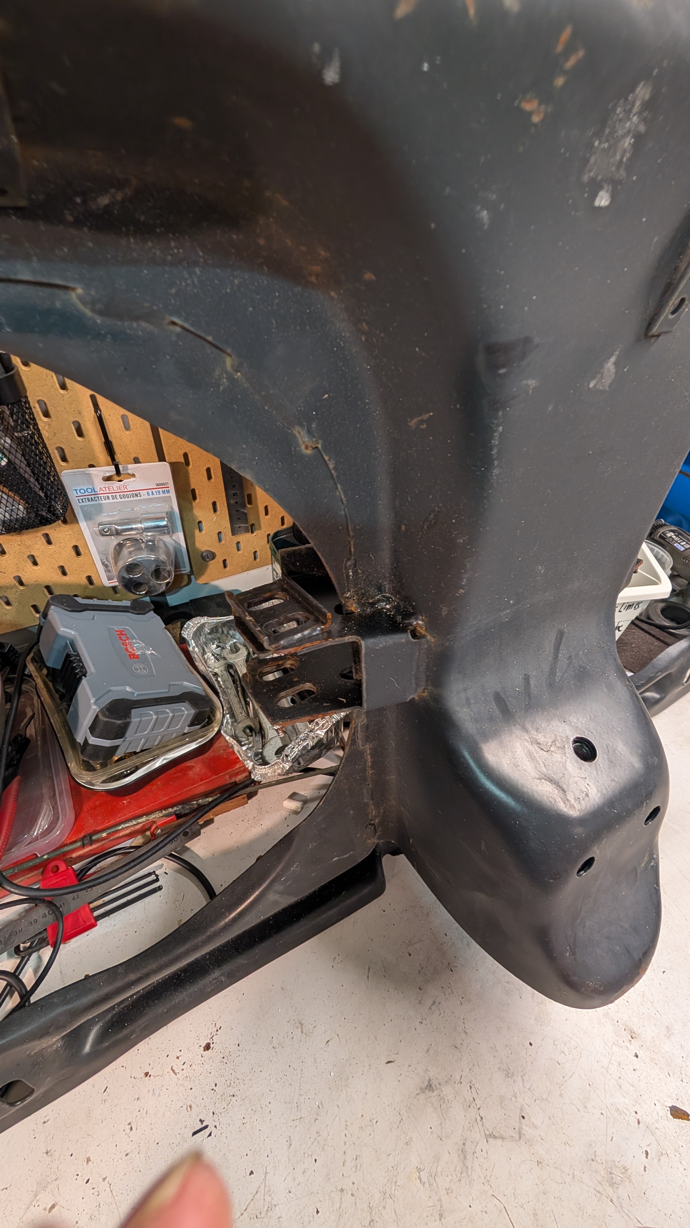 Par contre, la partie tête de châssis a été "refaite", dans le style grossier forgeron, elle a bien pris 10kg en poids avec tous ces cordons de soudure immondes.