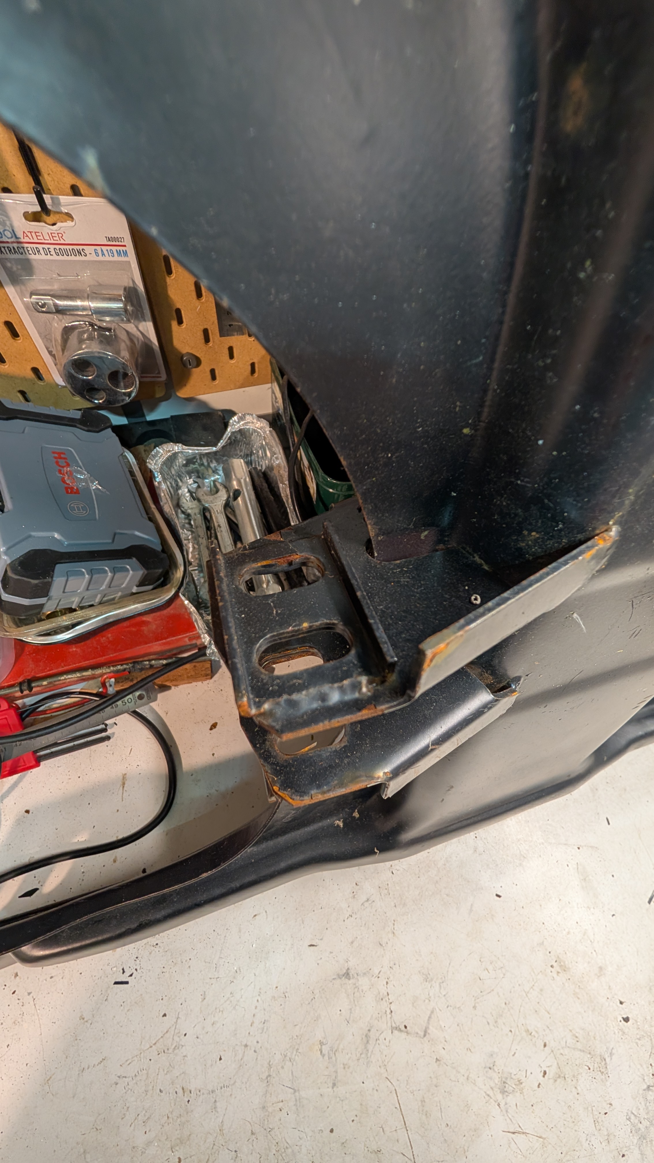 A cause des ancrages de bras, trop complexes à dessouder et adapter. On reprendra ceux d'origine, plus facile à greffer.