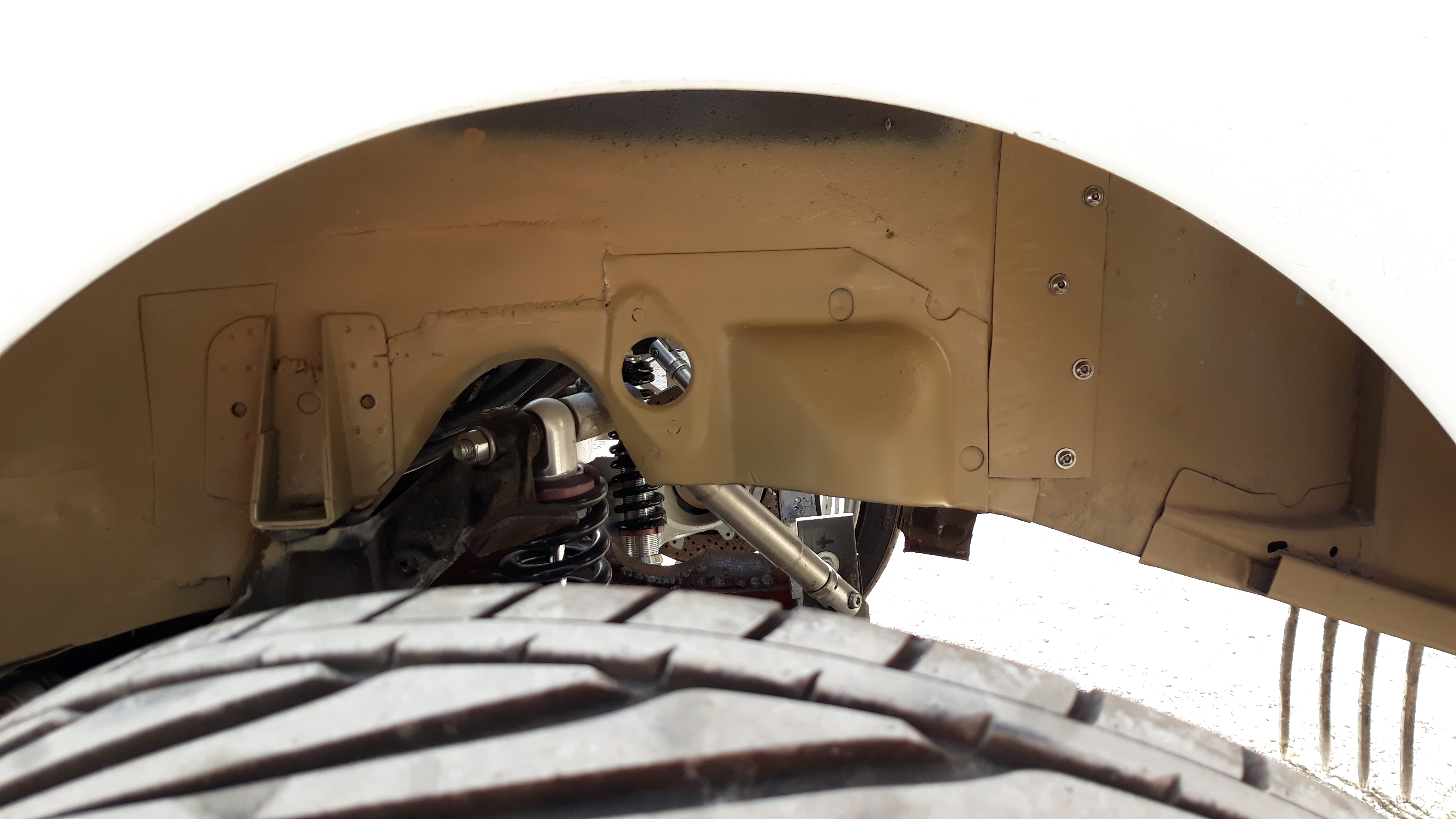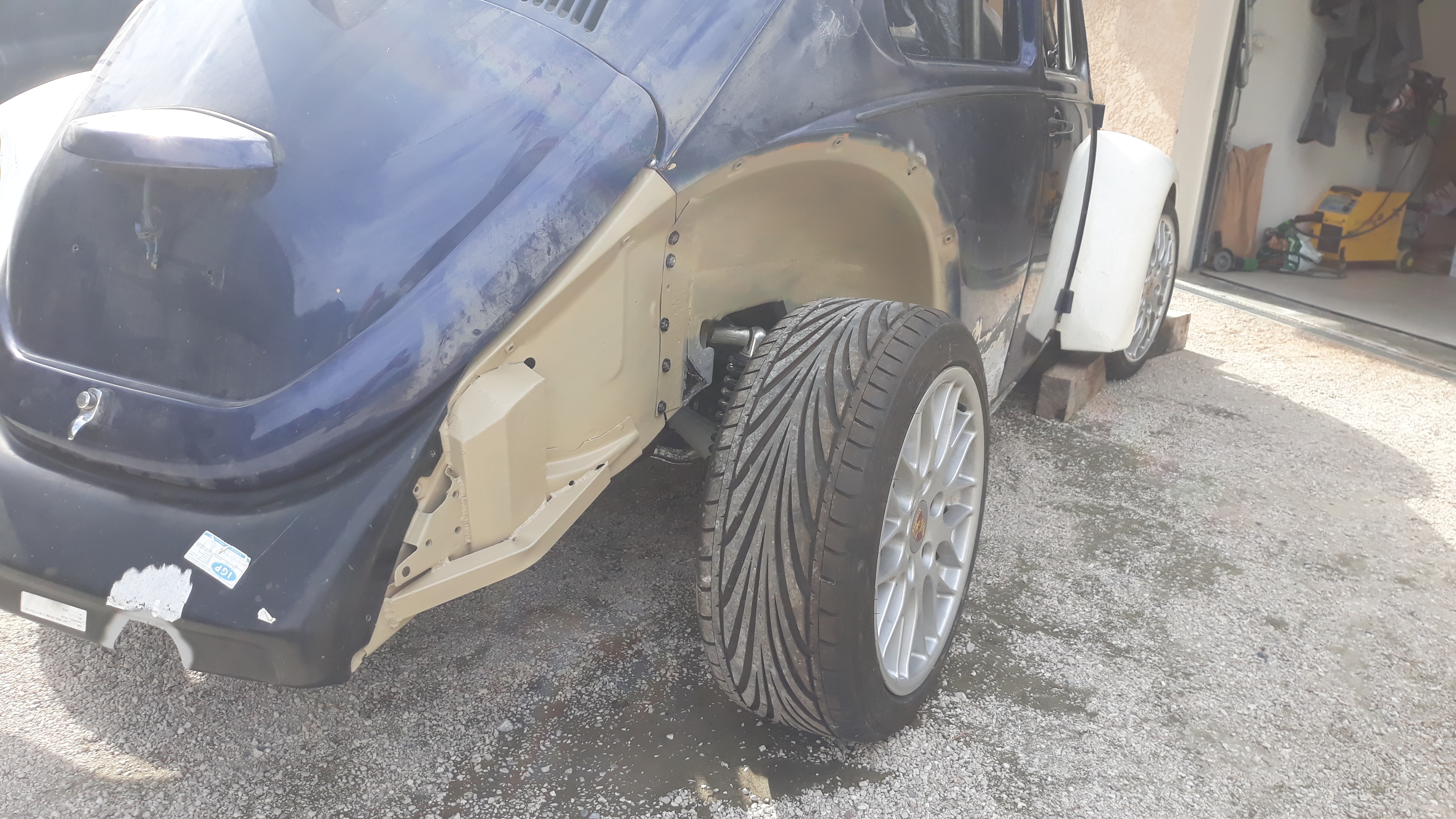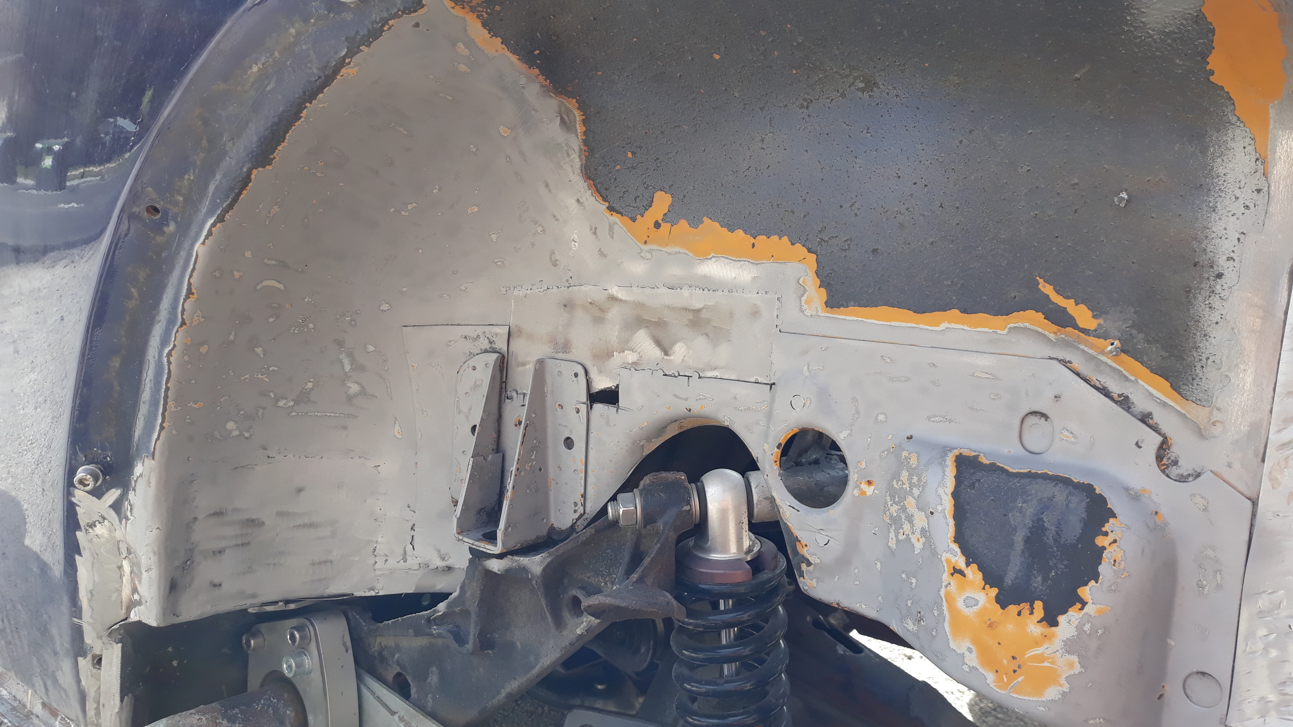 Sinon, le passage de roue arrière gauche : Avant, pendant le sablage, après l'apprêt ! ça fait bien propre une fois remonté! Next...
