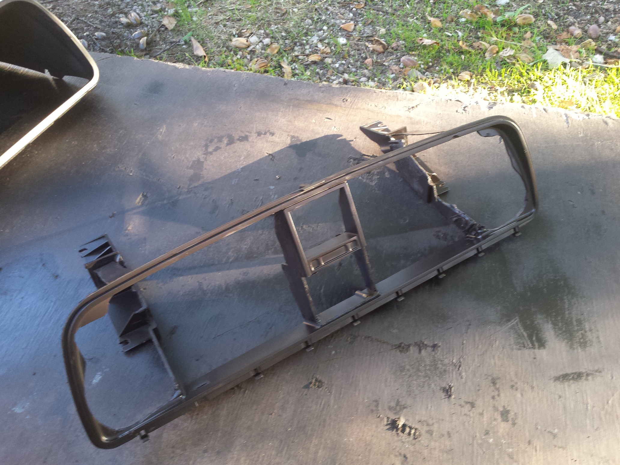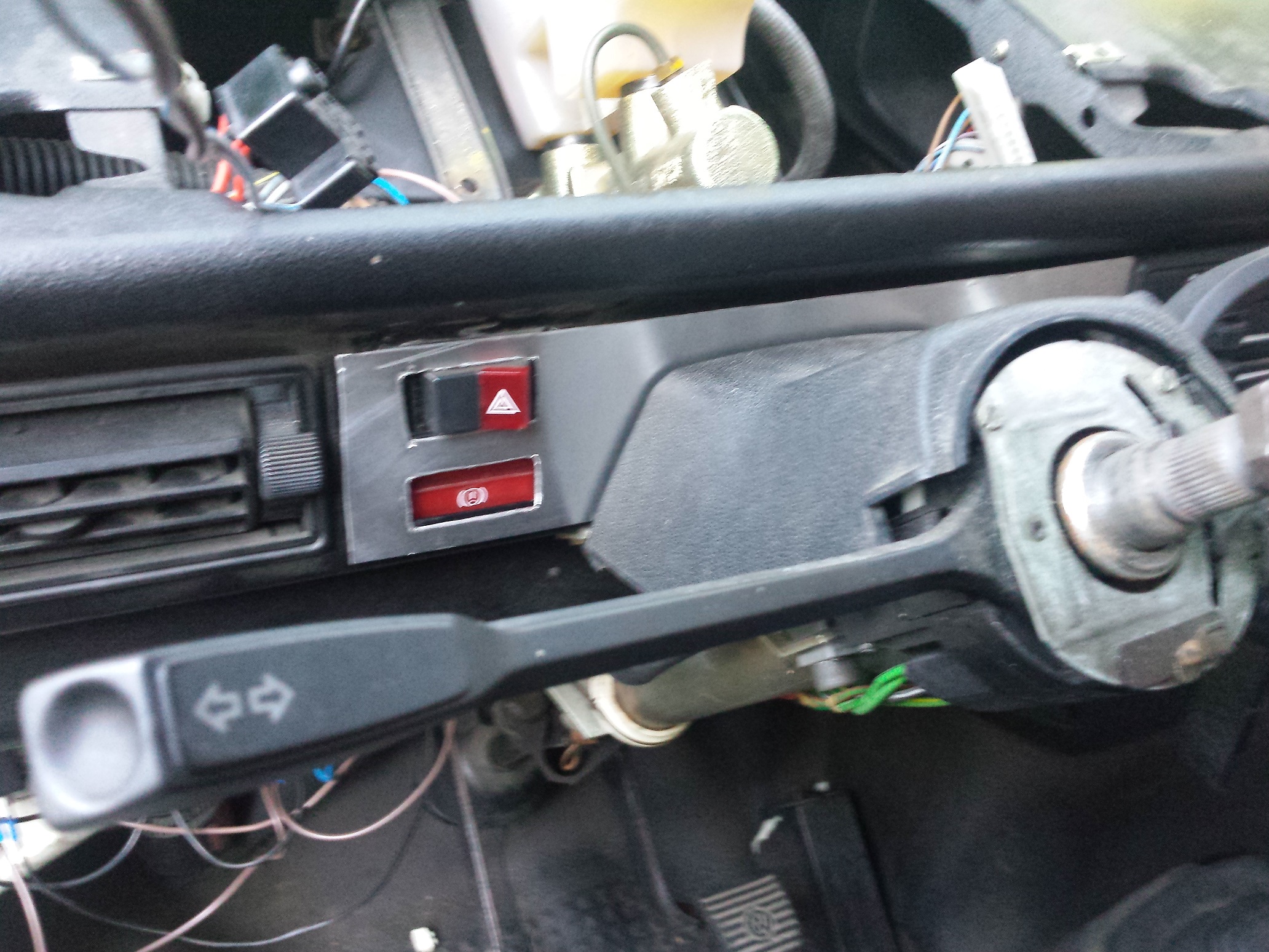 Pour le tdb voici ce qu'il reste du bloc compteur une fois que tout est coupé et que la place est faite pour les différents cadrans. j'ai aussi fait cette petite plaque qui permet de placer le bouton de warning et l'indicateur de frein à main que je ne pouvait plus mettre en haut. C'est également un test pour le futur design du tableau de bord. Le faisceau des câbles est finit et installé sous le bus.