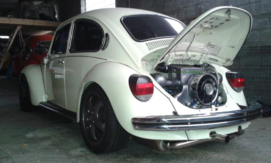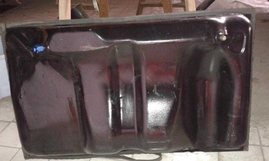 Coté droit sous la sortie de réservoir d'origine il y avait le filtre avant pompe 100µ, la pompe Bosch 079 et le filtre avant injecteurs de 10µ. Un bung AN-8 était soudé à la place de la sortie d'origine qui alimentait le filtre 100µ puis la pompe le tout en -8 puis sortie de pompe ça passait en AN-6 vers le filtre 10µ puis la rampe d'injecteurs droite. Il y avait une liaison entre les 2 rampes puis la sortie de la 2ème rampe vers le régulateur placé au dessus de la boite, à gauche, en face de la rampe gauche. Le retour se faisait par une durite avia AN-6 jusqu'au réservoir. Il y avait un bung AN-6 soudé sous le réservoir en vis a vis du départ en -8 (de façon symétrique). Il a fallut agrandir un peu les passages dans la coque sous le réservoir pour que les gros raccords avia passent et puisse être serrés.