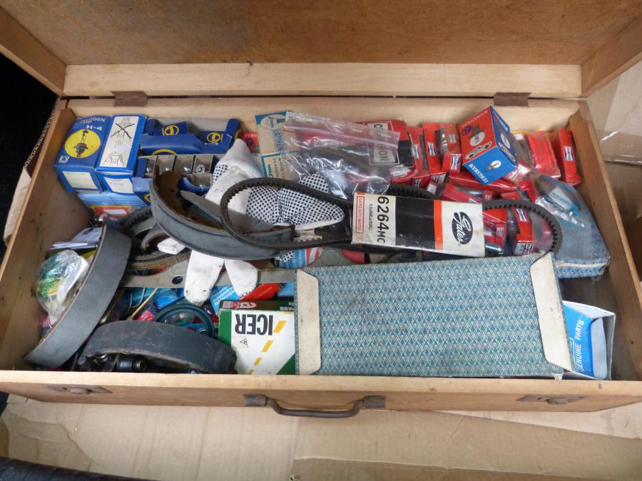 la boite est pleine à craquer de bougie, d'ampoule, de courroie, plaquette de frein, d'essuie glace des pochette de joint moteur type 1 NOS