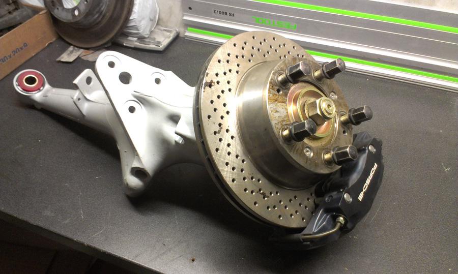 Bonjour BenoitBenoit a écrit :Rappel : Etriers Ar Boxster/996 sur disque AR Boxster/996 sur moyeux et bras alu de 944 voie étroite (donc non-turbo).