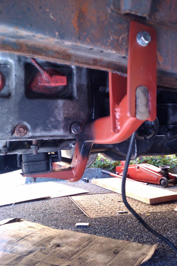 - j'ai enfin fini et fixé la barre de support moteur. Elle reprend les silentblocs d'origine du sub, et vient se fixer dans le longeron du combi. La base est donc une barre de popo recoupée et adaptée, on croirait que sa forme en U a été conçue pour