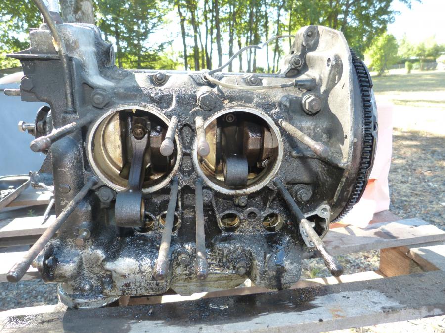 pompe a essence etc ensuite viennent les culasses, elles sont en bon état pas de félures ensuite viennent pistons et chemises, effectivement il pouvait bouffer de l'huile le volant moteur m'aura donné du fil à retordre j'aime pas son aspect il est bourré de petites fissures