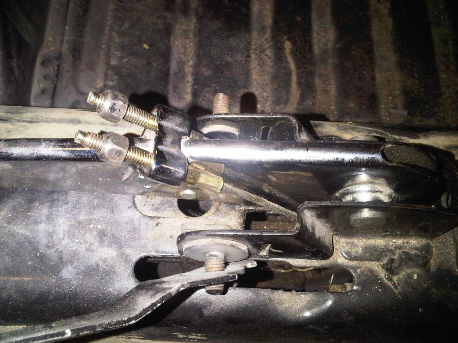 avec les tubes pas besoin de cette piece le cable de frein à main vient en butée à l intérieur, je ne pourrais pas faire photos du dessous mon demareur a rendu l ame en revenant de l EBI,donc pas possibilite de la mettre sur le pont