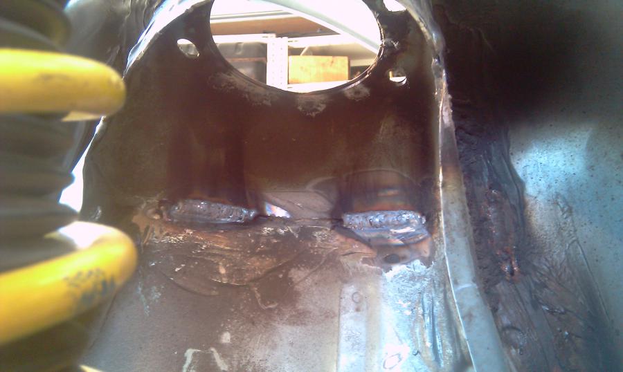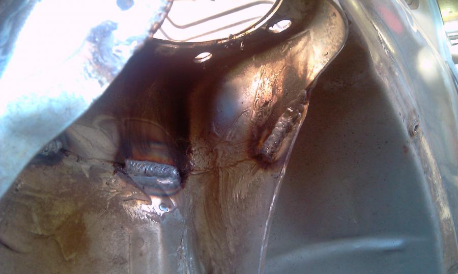 Maintenant et pour finir, afin d'éliminer le problème connu que Dangerous a soulevé dans un autre sujet sur les renforts, il faut s'occuper de pointer la partie supérieur du puit au flanc lui-même. D'origine, c'est deux pièces sont passablement ajustées et avec le temps, le flanc se déforme et la tôle encaisse. Le dôme de puit a au moins 10 points sur le montant de flanc et seulement 2 sur le dessus. Résultat, le dessus gondole....