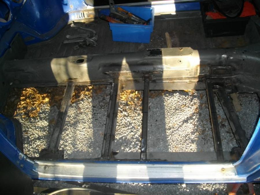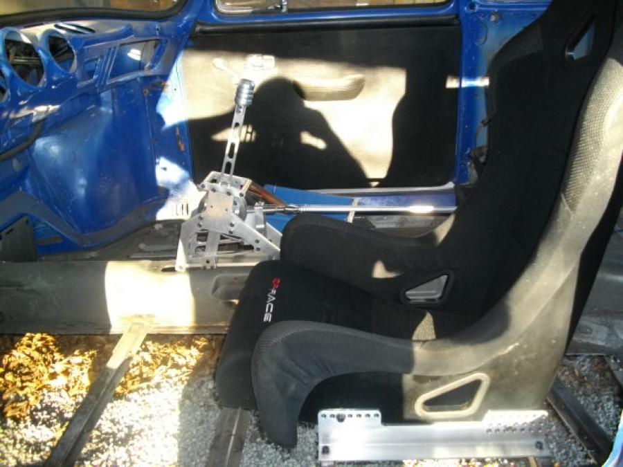 Maintenant gros travail sur l inter du notch , suppression des planchers ( ils sont pourris ) remplacer par de l alu , pas mal de trou a boucher pour lisser un peu l inter , soudures des support de baquets et harnais , adaptation du levier avec le passage de la tringle-rie ...... ponçage intégral et peinture , bref un peu de taf quoi