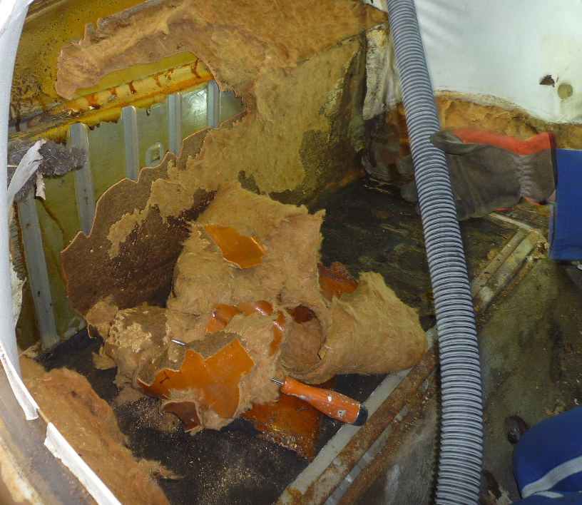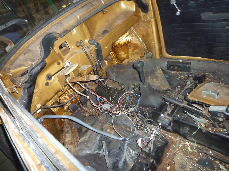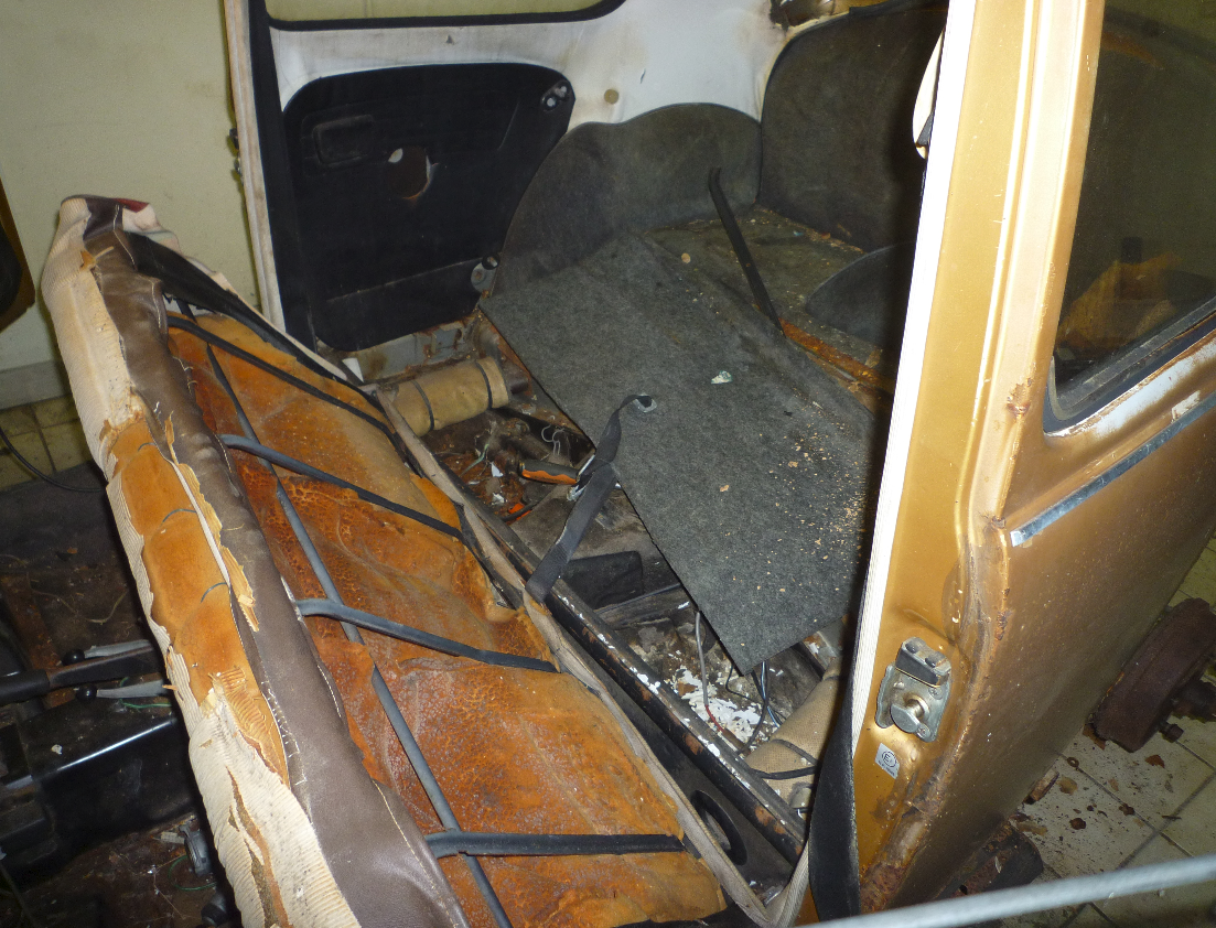 Les vitres sont toutes enlevé, sauf pour la porte passager; les garnitures et isolants sont en grande partie enlevé