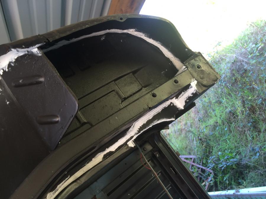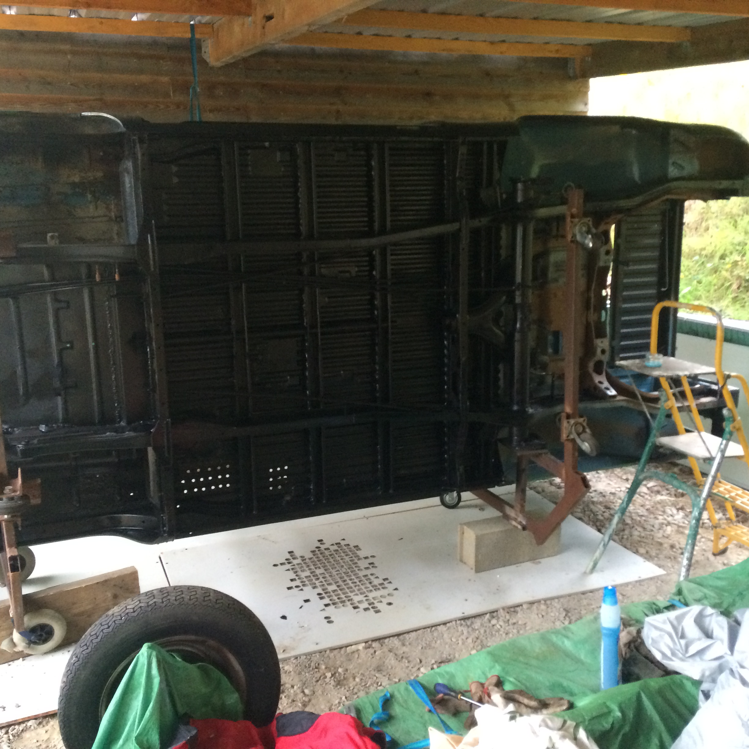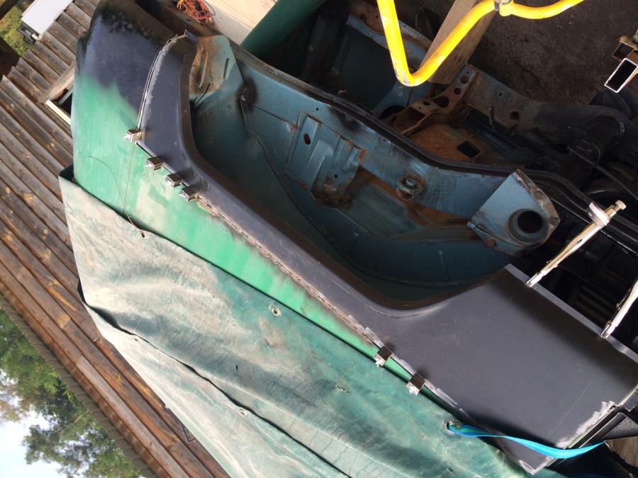 Peu d'avancement ces dernier temps cet aprem je fini mes joint de la partie arriere et l'antigravillon restera juste l'arche avant et après on peux le remettre sur ces roues pour finir la tôlerie