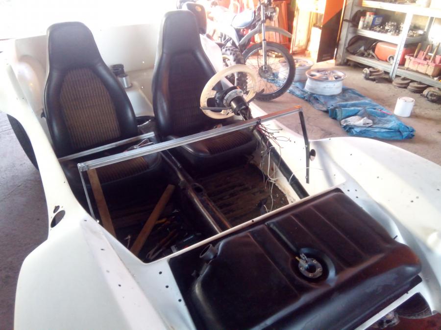 Pare-brise ajusté et fixé ainsi que les petits sièges Porsche restera le tableau de bord à modifier et à installer :thumb: