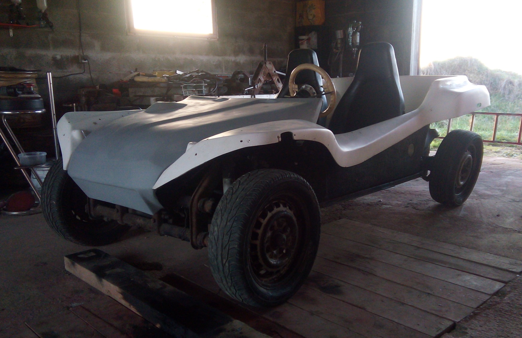 Un cadre autour du plancher ne serait pas du superflu. Sur un buggy de ce type, rajouter du poids c'est rien, même avec un 1600cc ça s'envole...