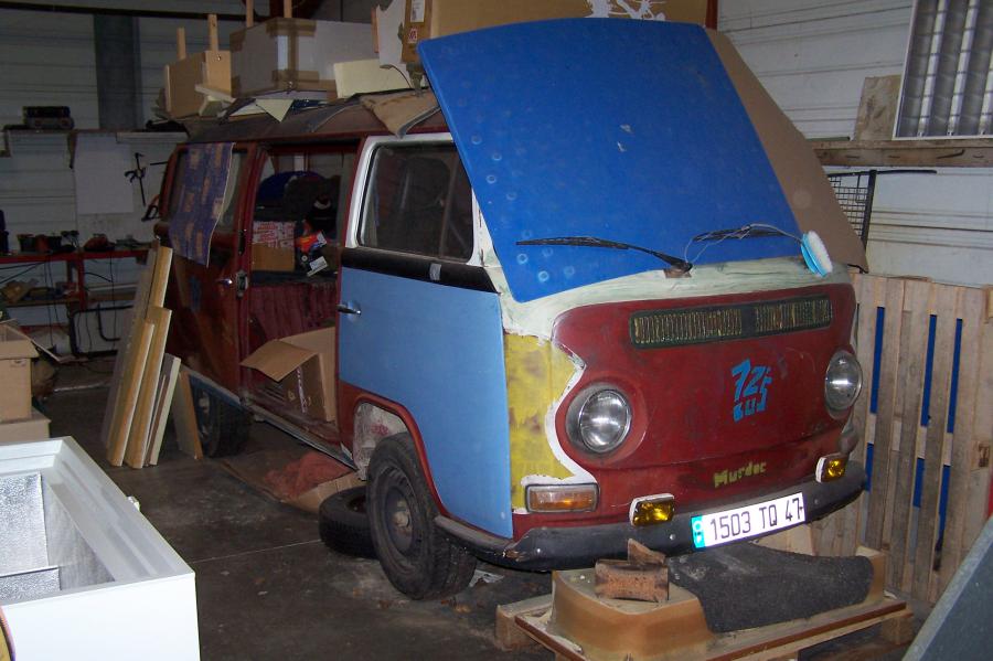 Le combi est au sec en attendant de pouvoir s'en occuper :