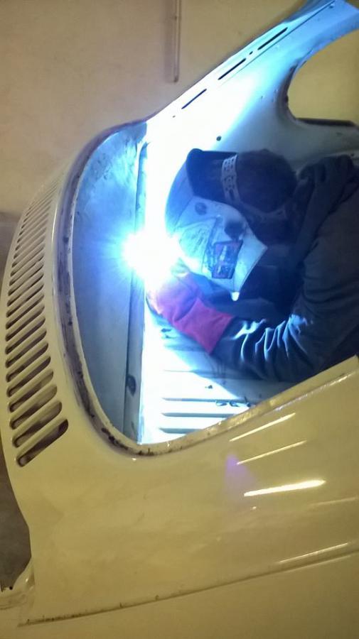 reprise du taf hier, au programme rebouchage des trous des anciens supports de sièges qui étaient boulonnés au chassis. mise en place de nouveau supports, mise en place du support de FAM hydro et des contres-écrous pour le système de double barre stab à l'avant. reprise aussi du nez de chassis qui était croqué. prochaine étape le sablage.