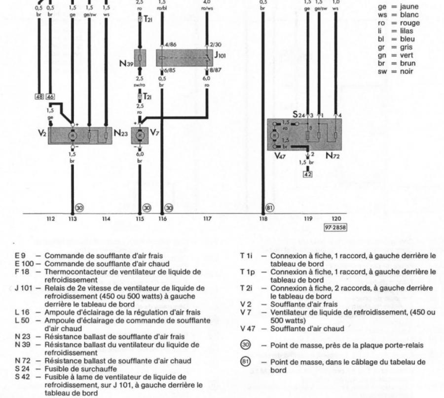 Non, sur ton schéma, les résistances sont bien dans le moteur d'essuie glace on les voit sur le schéma (dans le rectangle moteur, elles sont à droite). Si ton ventilo n'en est pas équipé, il faudra que tu en rajoute une.
