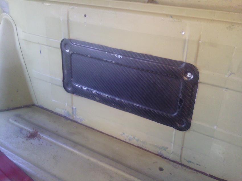 Donc voila mon outils préféré pour faire des coins arrondis: Ensuite on rejoint les trous: Pour boucher ces énormes trous j'ai fait un moule des emboutis du bus et tiré des plaques en carbone, juste pour voir voila une plaque "raté" mais ça donne une idée du rendu final (évidement, les plaques viendront par dessus):
